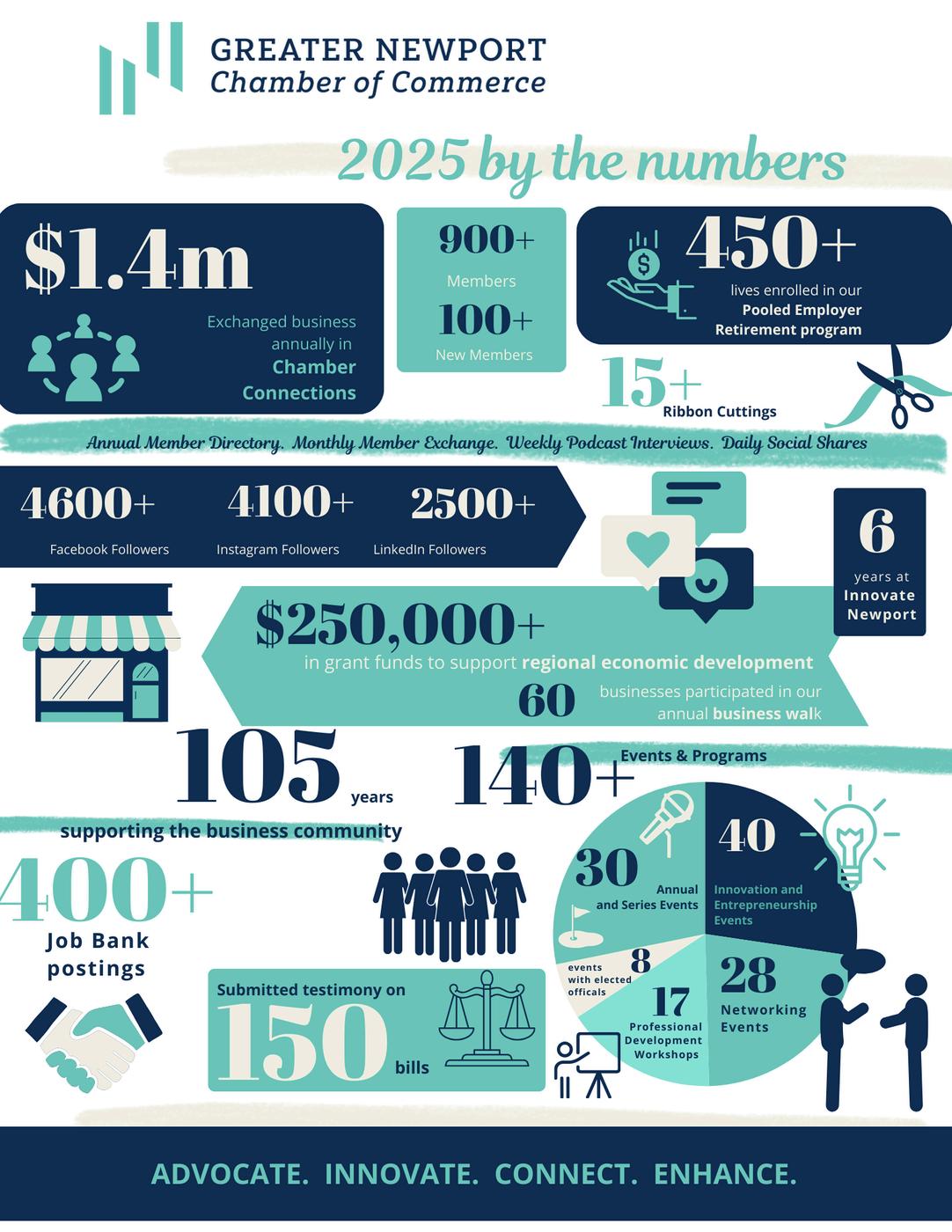 Visit NewportChamber.com for a full schedule of events and networking opportunities including mornnig, midday and evening events.