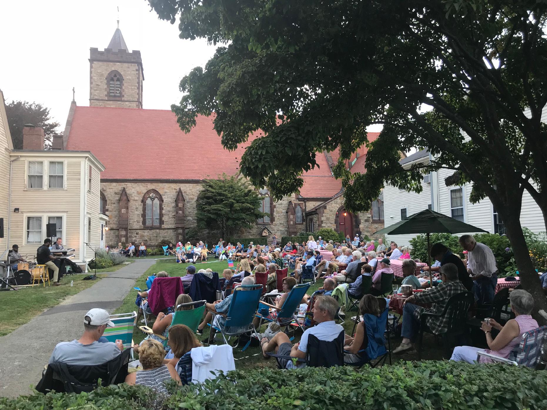 Event Details EVENT: Music on the Lawn DATE: Tuesdays August 2, 9, 16, 23, and 30, 2022, 6:00 pm to 8:30 pm LOCATION: The Zabriskie Memorial Church of Saint John the Evangelist, 61 Washington St., Newport WHO: Aug. 2 Doug Woolverton & The Groove Merchants Aug. 9 Mike Warner & the Ubiquitones, with Ben Knight Aug. 16 Duke Robillard Quintet Aug. 23 Lois Vaughan Jazz Aug. 30 MSD Quintet, with Doug Woolverton WHAT IT IS: Outdoor music with great bands, food, 50/50 raffle and a convivial atmosphere. BYOB. Donations welcome. ADMISSION: free CONTACT: 401-848-2561, parishoffice@saintjohns-newport.org Photo credit: Peter Berton. Music on the Lawn at St. John’s Church, Newport 61 Poplar Street, Newport RI 02840 401-848-2561 www.saintjohns-newport.org