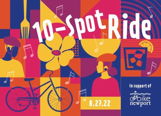 Running from 11am to 4pm on Saturday, August 27 th, the 10 Spot Ride brings together generous hosts, businesses, performers, philanthropists, bike enthusia sts, and all manner of community minded people all in support of Bike Newport’s work to integrate safe cycling into the fabric of Newport and beyond. Funds raised by the 10 Spot Ride support: bicycle safety education in our schools and community, advocac y for improved infrastructure, and the building of bicycle culture. When we support more people biking, our community benefits from improvements to our health, economy, and environment. In the words of the riders: