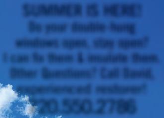 Double-hung window RESTORATION includes replacing sash cords (ropes) and removal of excess paint on wood and metal plus lubrication for smooth opening and closing. 40-year resident of PH. Contact David 720-550-2786