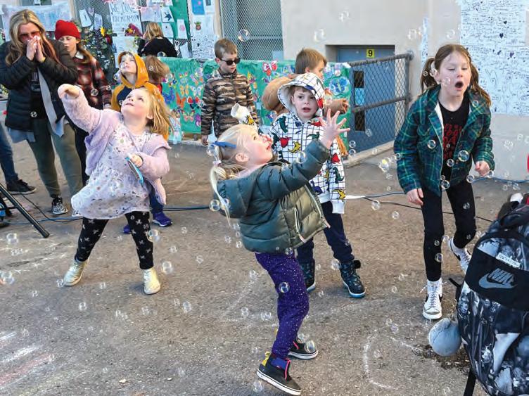 On Feb. 8, hundreds gathered on the blacktop behind the school at 19th and Elm Street for a bubble ceremony and send-off for Ms. Amy. (See Principal Burdette’s remarks and photos from that day on pages 16-17.) Three days later a memorial service was held at the Denver Botanic Gardens, emceed by Amy’s longtime friend Wendy Barr. Many spoke — highlighting Amy’s always-sunny disposition, her ability to forge deep friendships, her unwavering love and commitment to teaching. And yes, her infectious giggle.