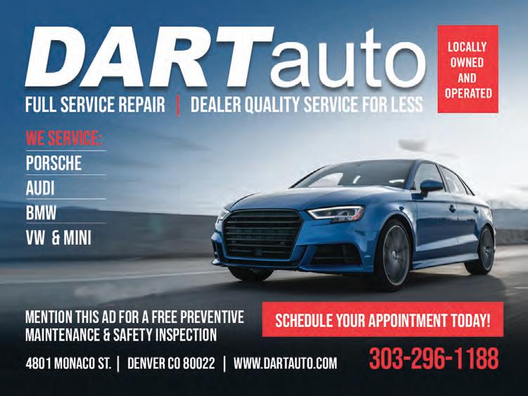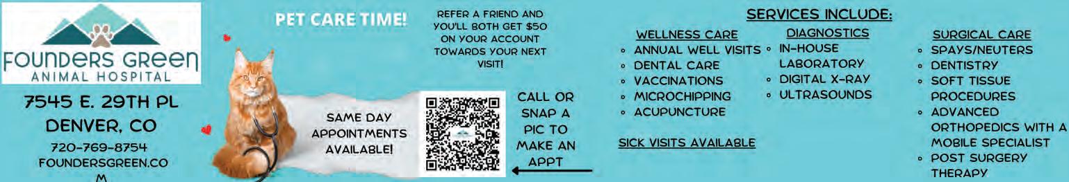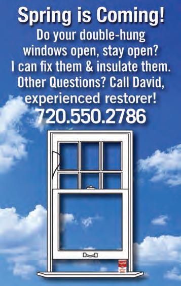 HOUSE CLEANING Providing 25 years of personalized cleaning service in Central Park & Park Hill Paulina Leon 720-628-6690 Deep & Detail-Oriented Cleaning • Offices/Homes/ Apartments/Airbnb • Move-in/Move-out • Eco-Friendly Cleaning Products (upon request) • Magnificent References with over 20 years experience • Free estimate • Senior citizen and veteran discount. JR Painting 720-485-7207 or jpabz04@gmail.com InteRIoR & exteRIoR PaIntIng DE ntA l Arts 5280 Best Dentist 2023 cosm E tic & fA mily DEntistry thomas J. croghan D.D.s, P.c. 303-377-8662 complete and comprehensive dental care for the whole family! Ireland’s Finest Painting Co. Bringing Color to Park Hill Years + (303) 512-8777 irelands nestinc.com Complete Interior & Exterior Painting Residential & Commercial 10% OFF all interior jobs performed in December - March 2023 ServiceS include: • Electrical • Plumbing • Painting • Venting • Drywall - all types of texture • Tile flooring including LVT • Custom shower pans Competitive rates. Over 20 years of experience. References available. Complete bathroom and kitchen remodels including demolition, debris hauling and clean up Bathroom & Kitchen remodel Pablo rodriquez | 720.485.7207 | jpabz04@gmail.com MAYFAIR VISION CLINIC Dr. Janice I. Jarret Adult and Children’s Vision • Complete Visual, Eye Health and Glaucoma Testing • All Types of Contact Lenses • Frames with One Year Guarantee • Most Insurances Accepted • Free Adjustments and Minor Frame Repair • 15% Discount for Senior Citizens 303.333.9898 1336 Leyden Across from Safeway