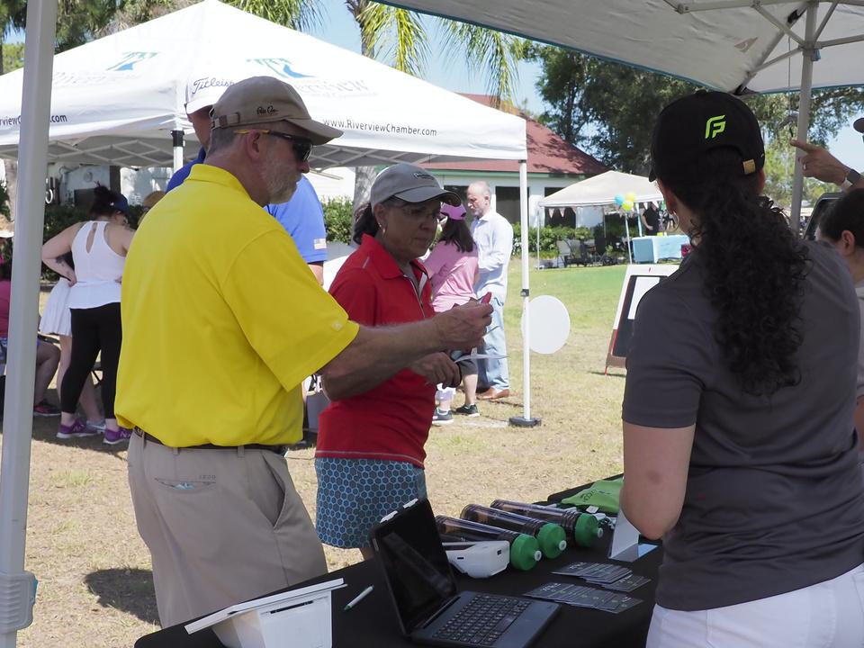 Before the shotgun start there were many opportunities for the guests to purchase raffle tickets and game enhancements. The raffle prizes contained dozens of amazing baskets and other items donated by the generous members and friends of the Greater Riverview Chamber of Commerce. A continuously big hit is the Wagon of Cheer that was filled with over 25 bottles of liquor. GRCC Ambassadors and Board Members contributed top shelf liquors to create this bar stocking paradise that raised over $2,500.00 for the Chamber.