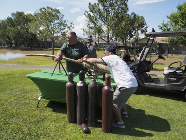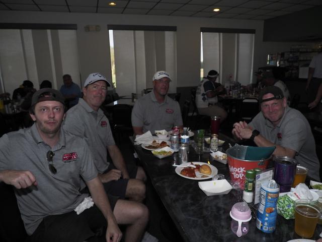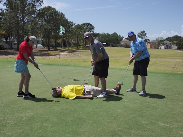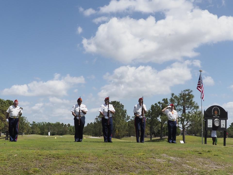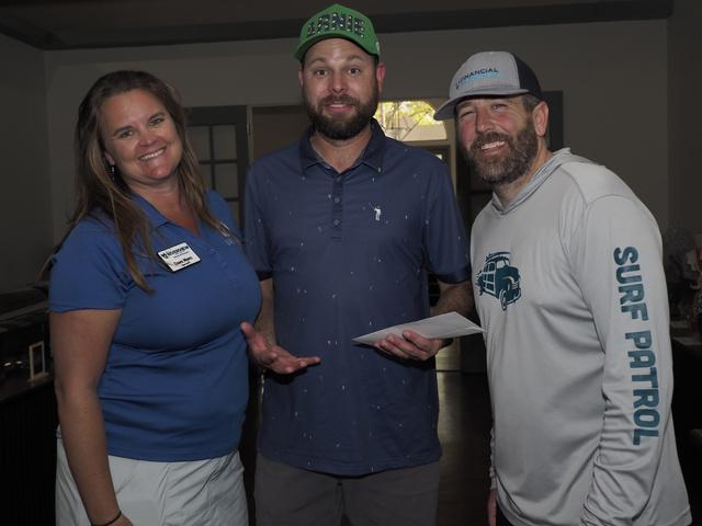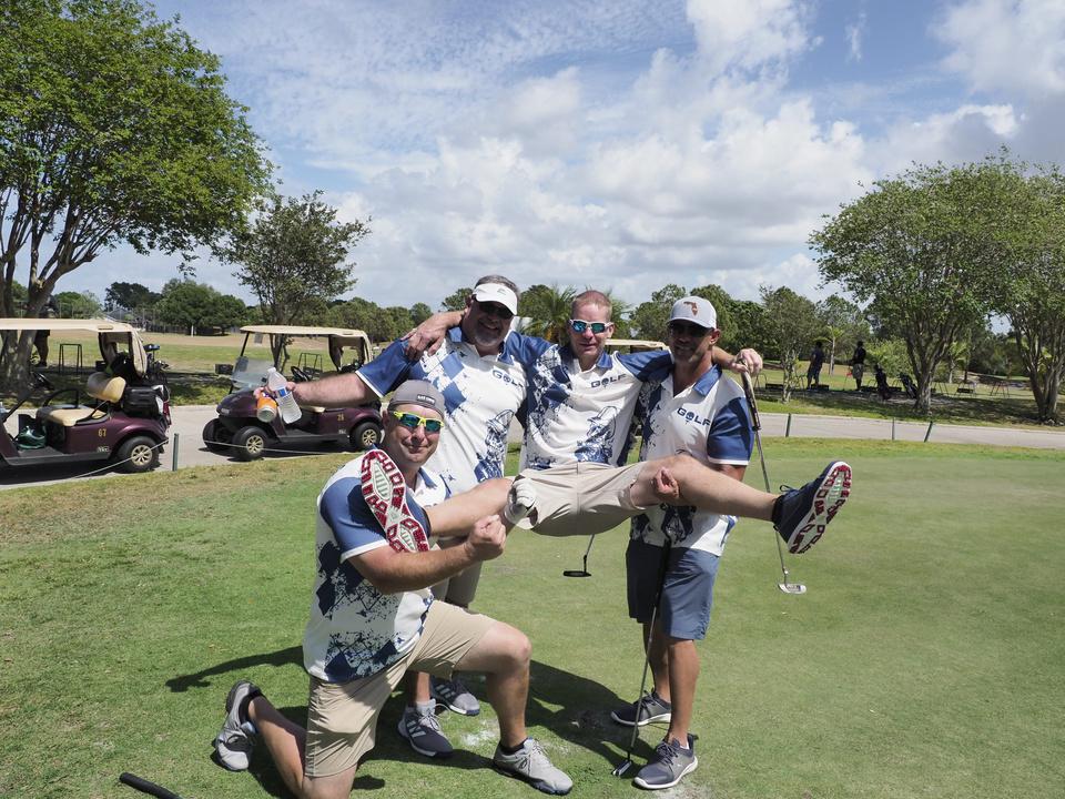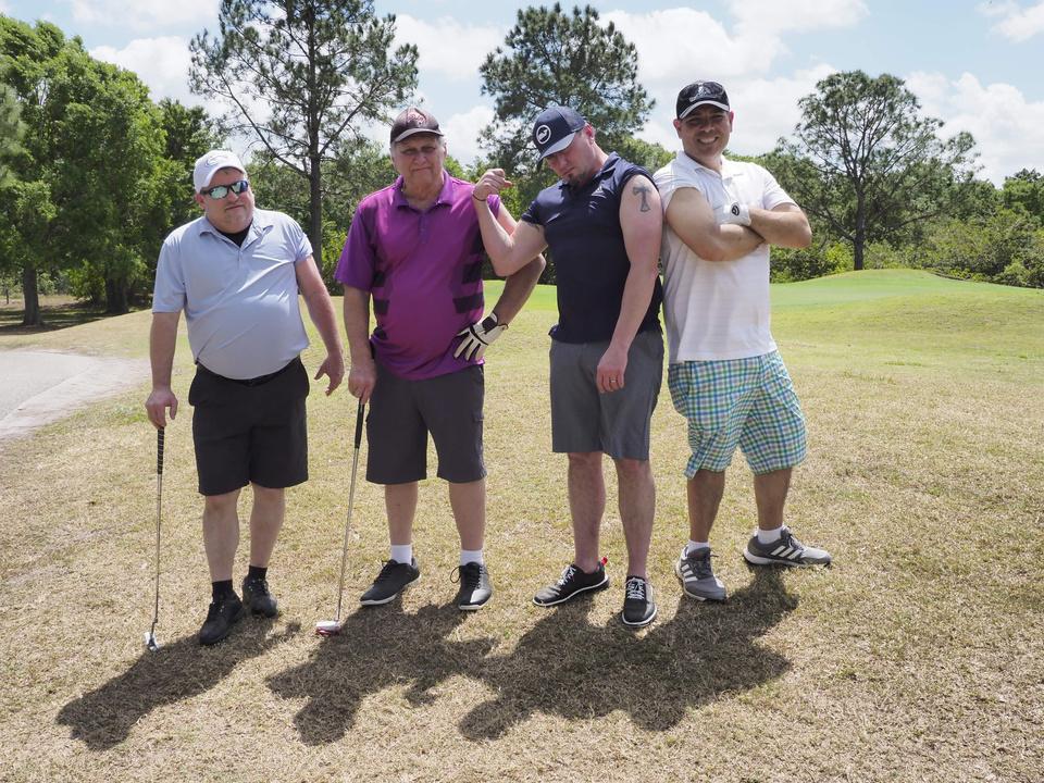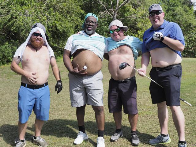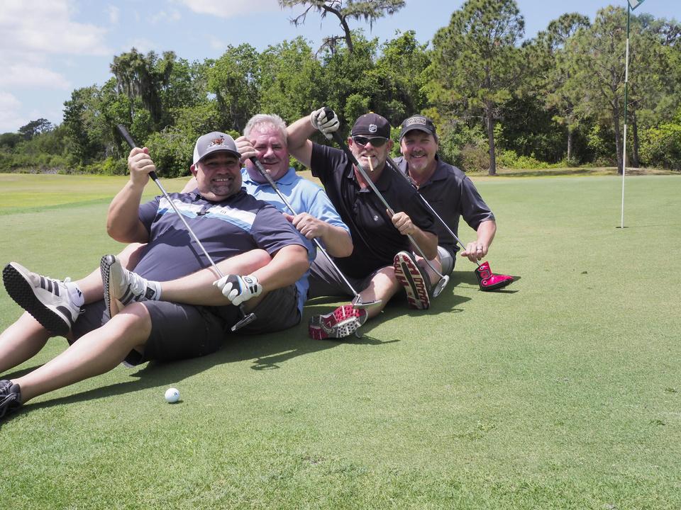 Immediately following the Bryan Hindman Electric Ball Drop, representatives of the Marine Corps League performed Taps and presented an official shotgun salute to signal the beginning of the tournament. The 25 teams enthusiastically departed the clubhouse for the start of the games, many who were serious about winning the tournament and others who just wanted to have fun with their friends. All teams had the chance to use mulligans and yards of string to enhance their chances of winning. Ultimately, the Bryan Hindman Electric Team took first place in the Golf Tournament, with the Wackiest Team Photo Contest being won by Brandon Legal Team!