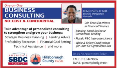 The Florida Small Business Development Center (SBDC) at Hillsborough County assists existing and emerging businesses in Hillsborough County, through no-cost confidential business consulting, information, and low-cost training.