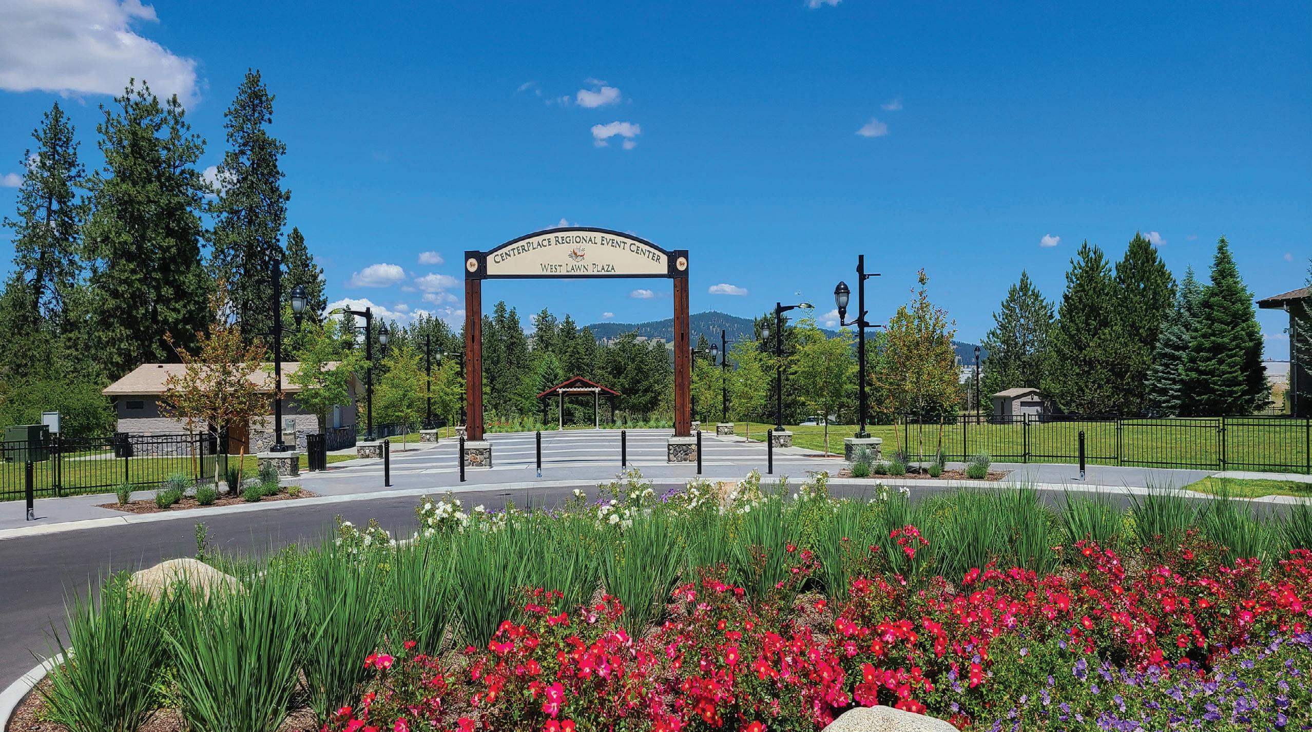 The City of Spokane Valley has developed a new outdoor event space at CenterPlace Regional Event Center. The 10,540-squarefoot hard scape plaza is surrounded by lush green lawn and blends seamlessly into the natural backdrop of Mirabeau Point Park.