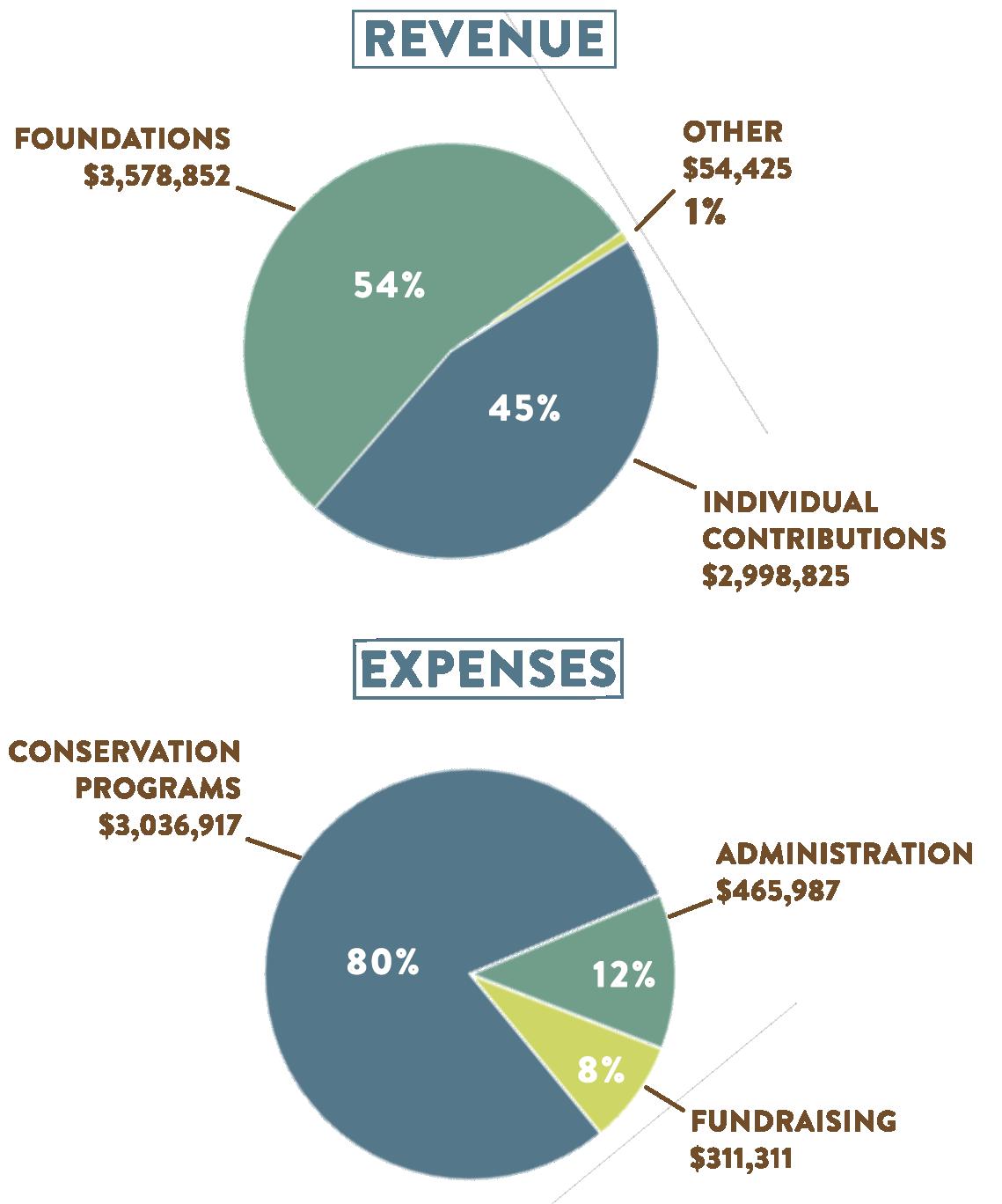 Our financial sustainability is due to generous gifts, bequests, sustaining donations, events, and restricted funding for key campaigns and projects within the ecosystem. This generosity allows us to think bigger, and make lasting investments in our work now, and in the future.