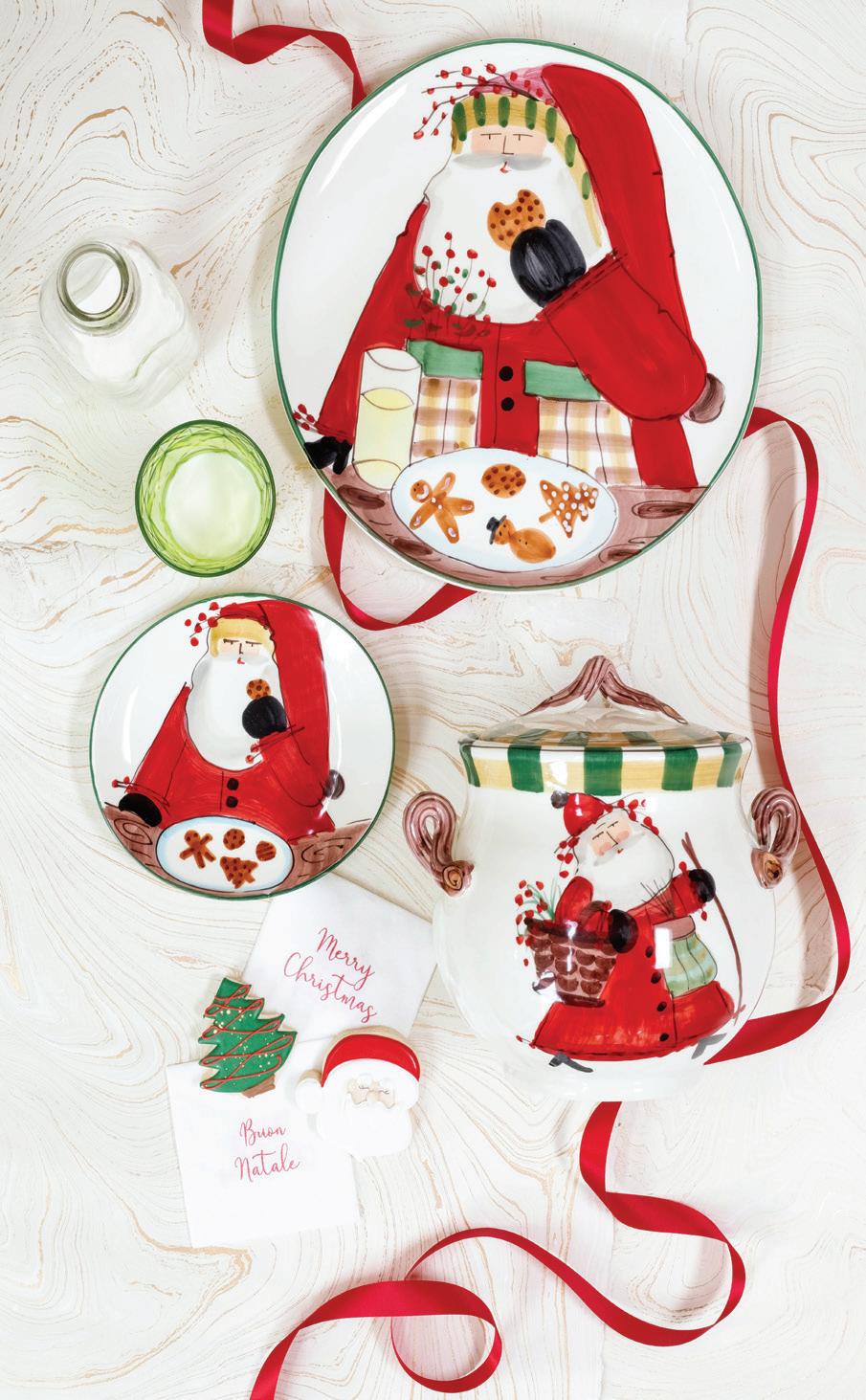 Don’t want lots of props cluttering your space? Turn simple home goods into festive statement pieces. “I bought a fun cookie platter because I host a cookie exchange with all my girlfriends,” Nowak says, noting that themed kitchenware is an easy way to feed into her holiday display.