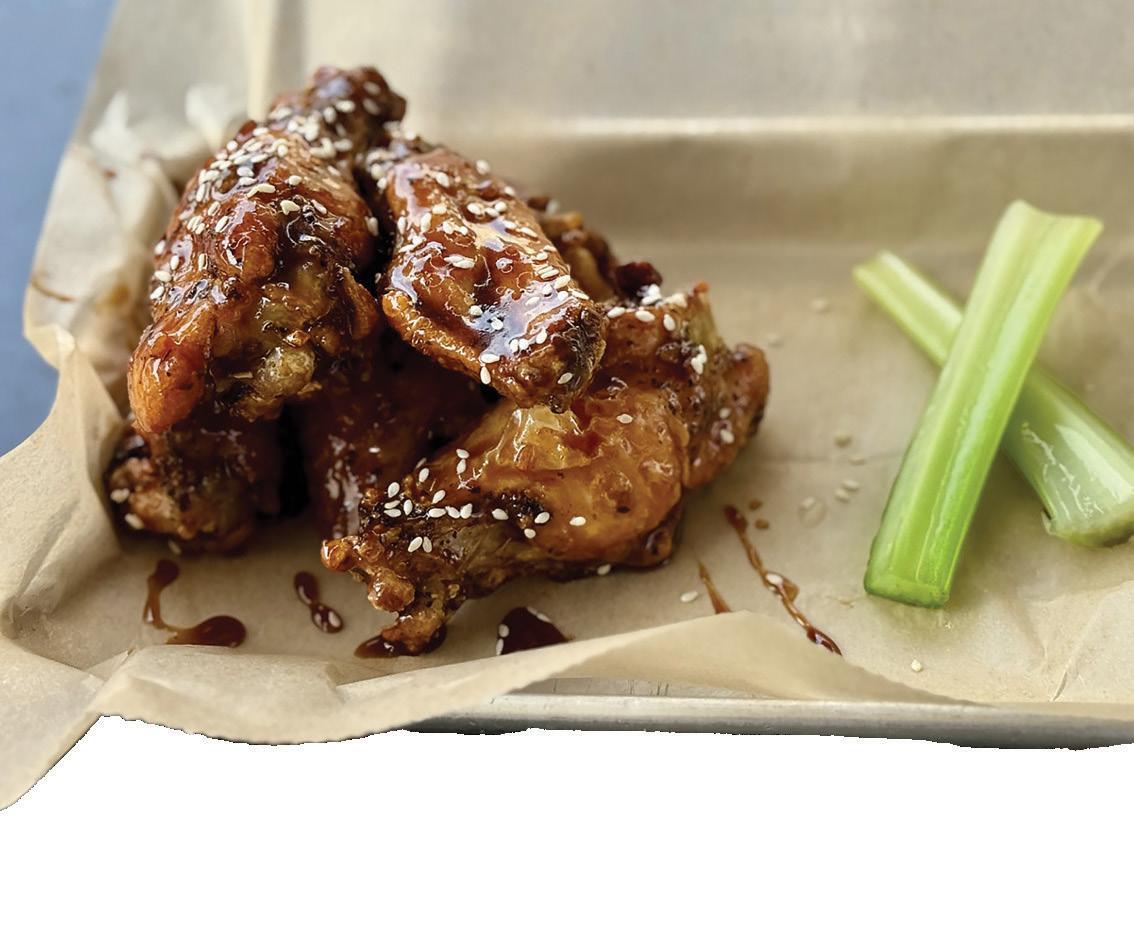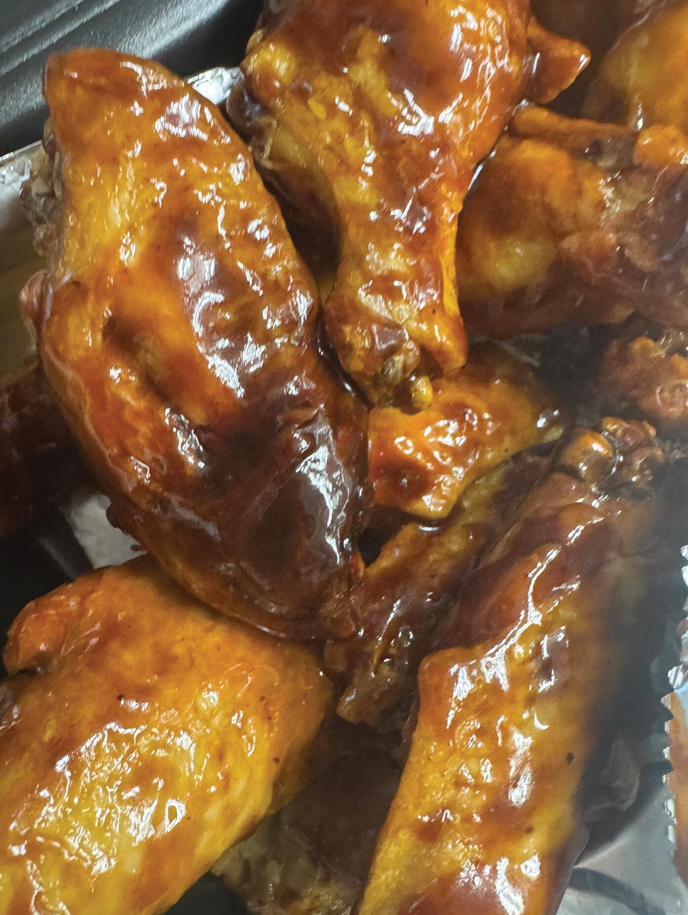 Hot Tamale Wings: 6 bone-in, boneless or cauliflower wings. A sweet and spicy cinnamon candy glaze with a touch of mild red pepper heat—nostalgic and bold, like the treats you’d find at grandma’s house.