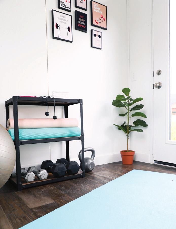 Pick your hardware carefully when you have limited space to allocate for your dream home gym. Do you want cardio machines or a squat rack? If you decide to purchase larger hardware, it will likely mean that you will have to do the rest of your gym design around this piece of equipment. Next, you want to consider smaller pieces of gear. A barbell is a good first choice to purchase — or free weights to ensure you’ve covered strength training. Next up, do you want steps, a BOSU or Pilates ball, a Kettle Bell, yoga mat or skipping rope? Design tip: pull-up bars and resistance bands can be installed in doorways to save you valuable space.