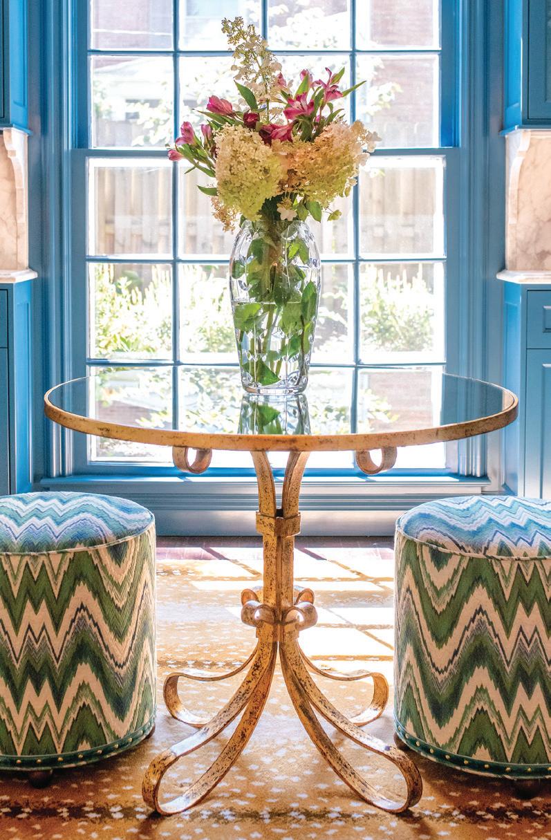 NO ONE KNOWS EXACTLY HOW the architect of the 1928 neo-Georgian intended the tiny first-floor room to be used. But the current owners of the 5,000-square-foot Shaker Heights residence saw it as an early 20th-century version of the bonus room, one they turned into a study for their four children. The 14-by-12-foot space was near the kitchen, a location that made it easy for the couple to watch as the kids did their homework. The children, however, gradually migrated to their bedrooms to do their assignments. By the time the oldest went to college, it was obvious that the room needed a refresh, particularly after Shaker Interiors founder and principal designer Nikki Pulver and general contractor/ partner Gerald Kazmir finished redecorating the neighboring family and living rooms.