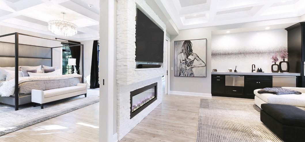a dishwasher, built-in coffee maker and drawer fridge. Boutique closet space provides displays for clothing, offers plentiful storage and “is like walking into a shop in Miami,” Simon relates.