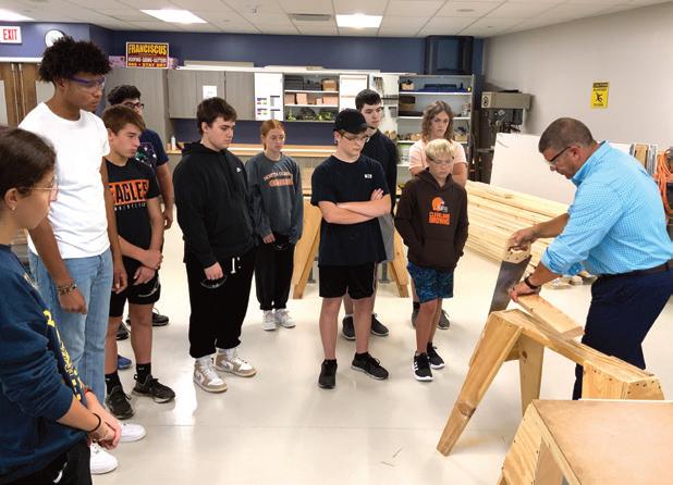 “I come from a trades family,” Eberhardt adds. His father was a master craftsman, and even though Eberhardt showed inter est in following his family’s lead into the construction business, his father insisted he go to college. “I have many friends who worked in the trades and they make a very good living and they love it,” he notes. “I try to push that as much as possible, and I know we have had a lot of kids show in terest in the trades because of this class.”