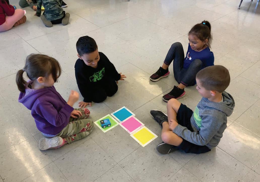 First grade students (above) were introduced to sphero indi - a robot car! Students used colored mats to create routes and patterns for the car. These kits were purchased through grant money.
