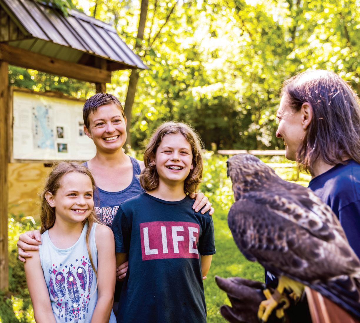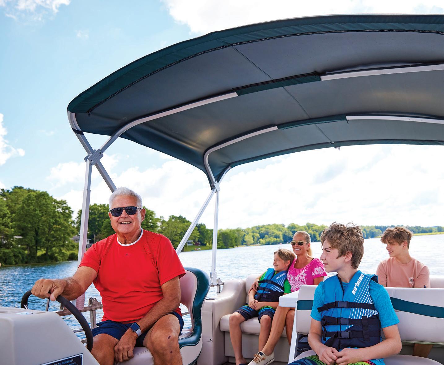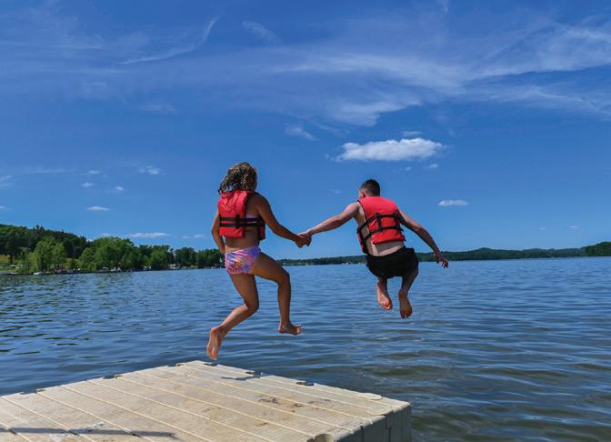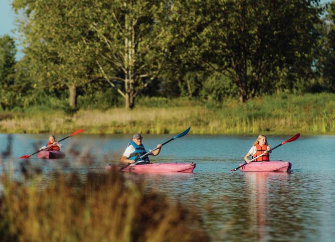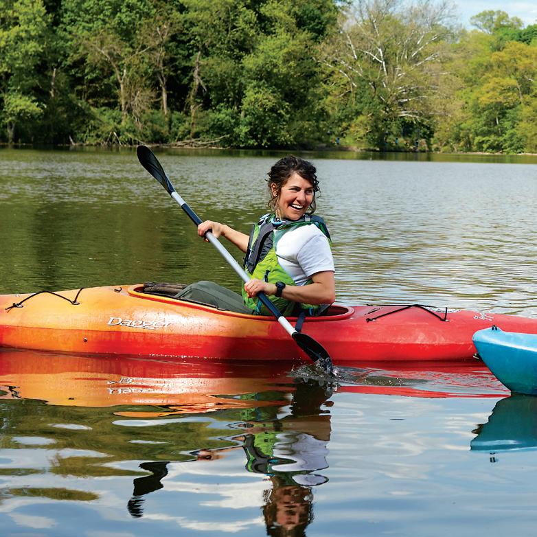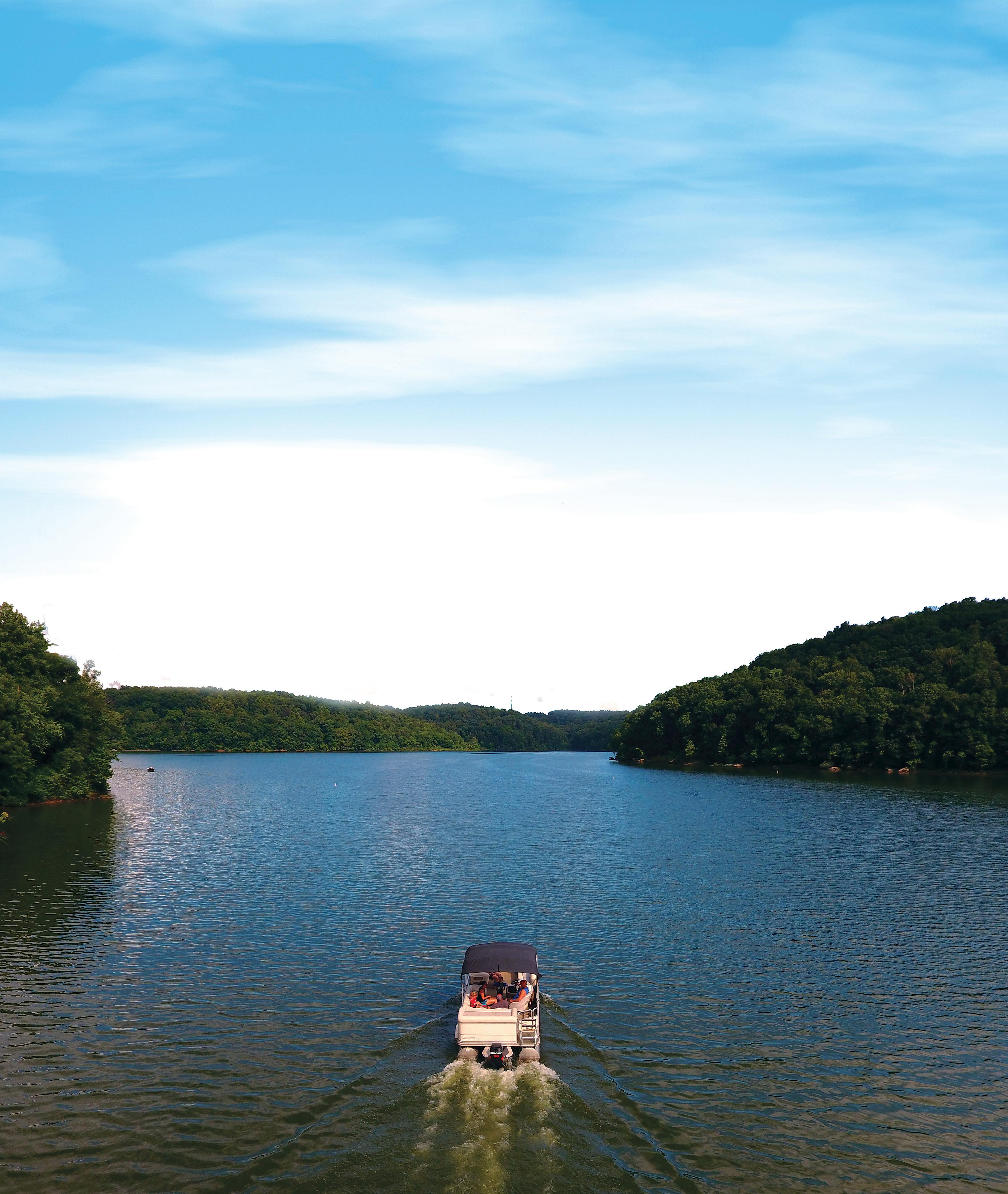 slide to its 16-person rentable pontoon boat — perfect for lake lovers who like to make a splashy entrance. District manager Mike Jarvis says the lake’s beach is also a popular attraction, as it and the lake provide a relaxing respite from the active adventures visitors find in other parts of Hocking Hills.