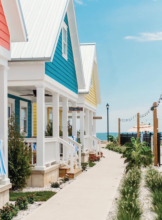 Tropical-hued, conch-style houses fill Boardwalk Village, and small palm trees surround an aquamarine swimming pool at the heart of it. This idyllic getaway opened in Celina along the shore of Grand Lake St. Marys in 2022 and continues to grow as it draws travelers looking for the flavor of an island-style getaway without straying far from home.