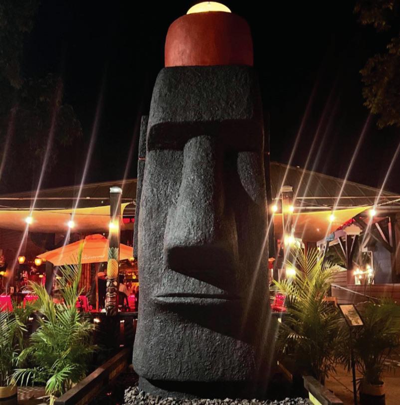 Before you even walked into the Kahiki, it made a big impression. The front door was flanked by two towering Moai sculptures with flames shooting out of the top. Once an iconic symbol of the Aloha spirit in Central Ohio, one of the two famed Kahiki Moai has now been restored and greets patrons outside Huli Huli Tiki Lounge in Powell.