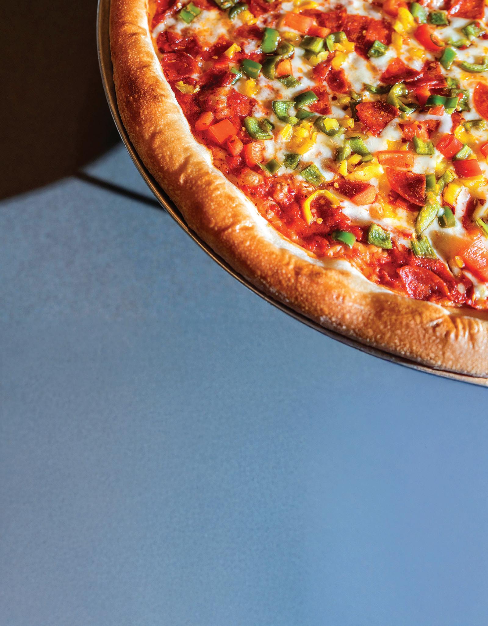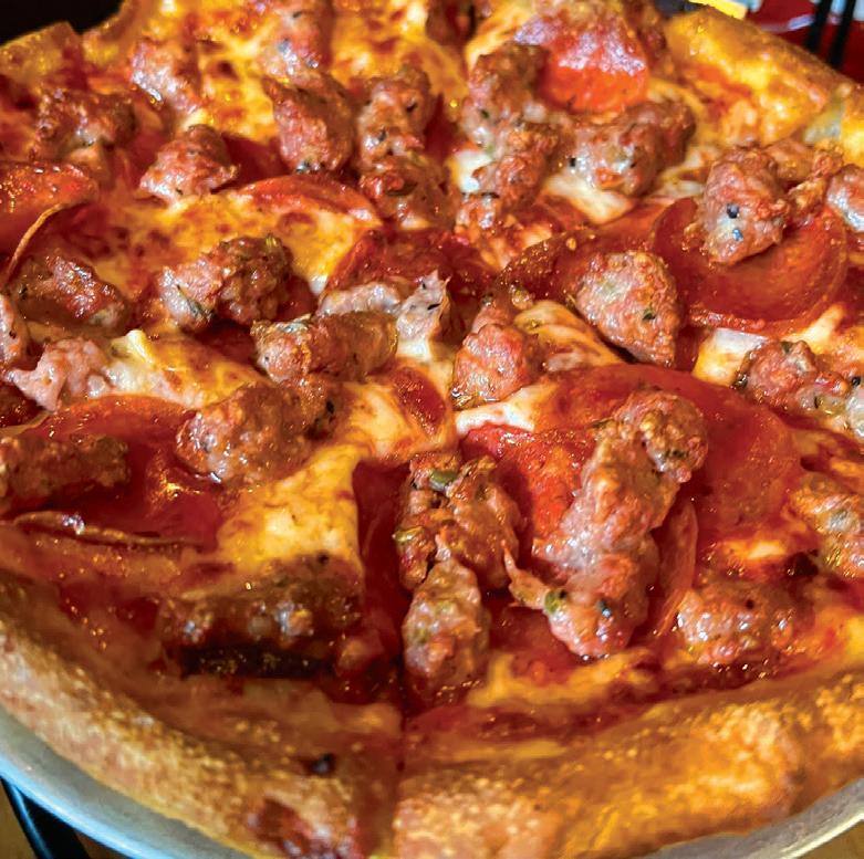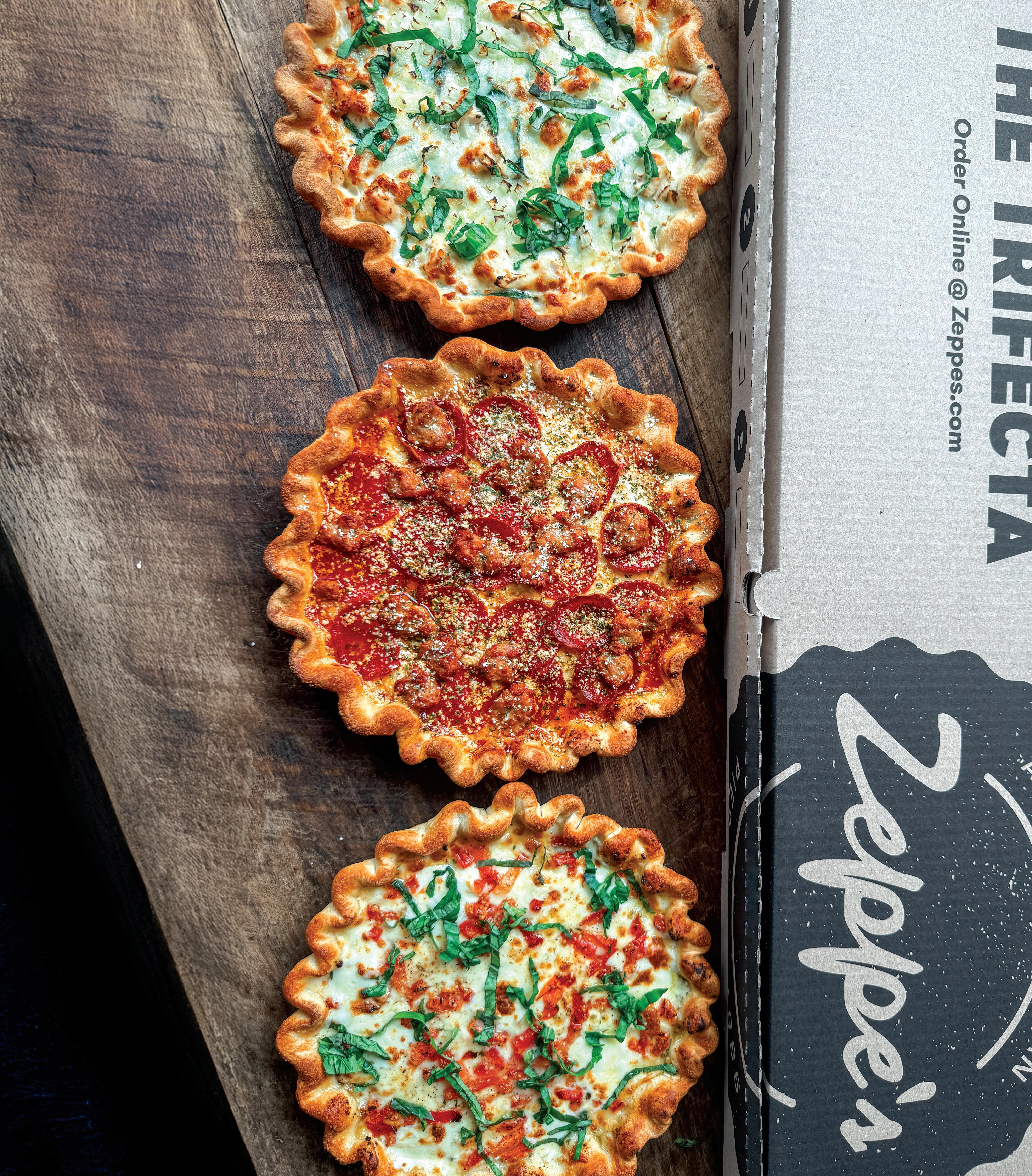 9” 6-cut pizza with ZigZag or thin crust, marinara sauce, Italian sausage, pepperoni, ricotta cheese, chopped garlic, provolone & mozzarella cheeses, parmesan cheese and parsley.