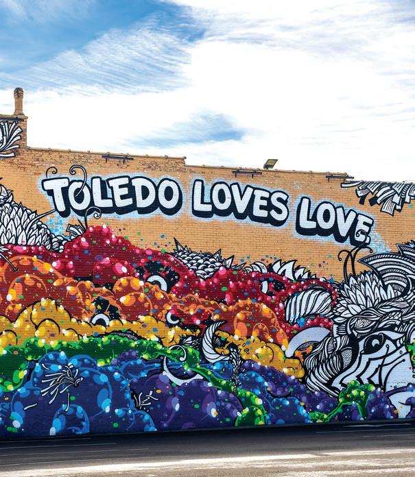 that's spurring new riverfront business and development. Currently, 80 of the planned 300 acres of greenspace are open for exploration, including Glass City Metropark on the east bank — one of 19 Metroparks in the region. On the west bank, the Riverwalk passes through Ostrich Towne in Toledo’s oldest neighborhood, the Vistula Historic District. Here you’ll find a vibrant mix of colorful murals and brick facades housing restaurants, shops, and office and event space. One space bringing people together is Tolhouse, a social club for the city’s entrepreneurial class and young professionals. Toledo Pickle Co. is a newcomer on Water Street and offers indoor and outdoor pickleball courts, climbing walls, shuffleboard and cornhole.