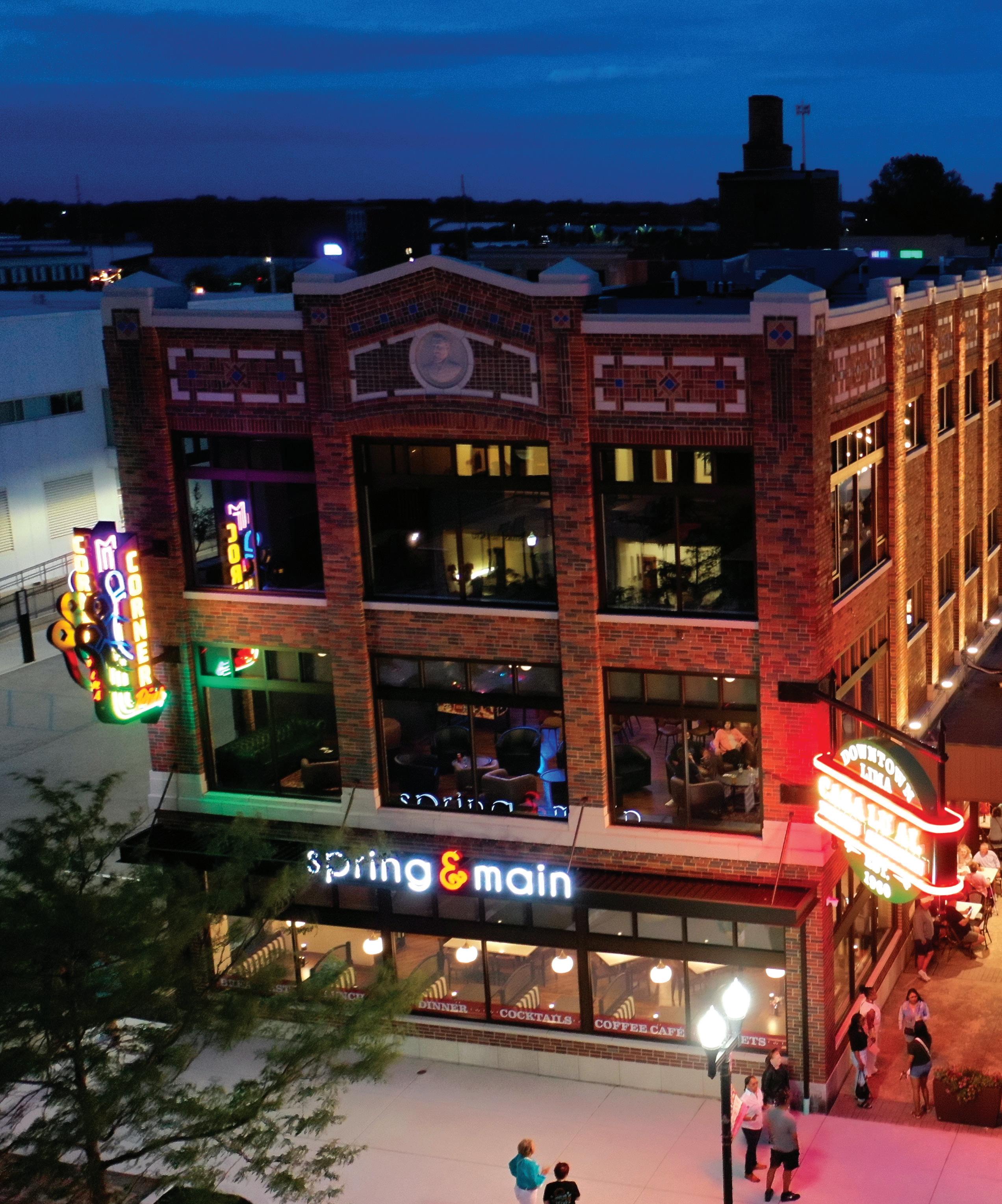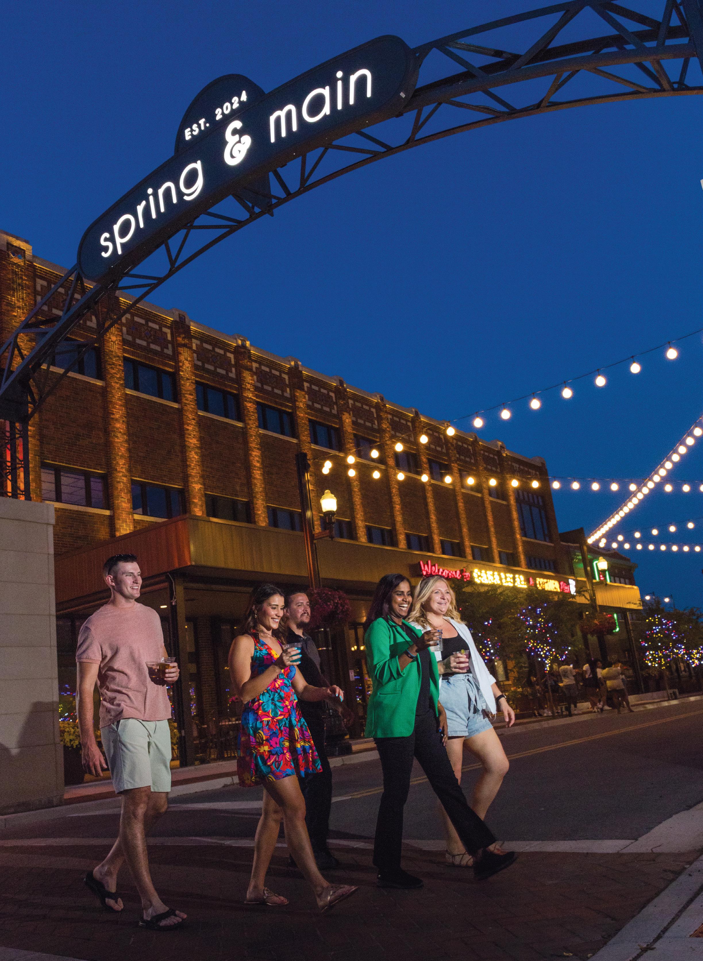 At the heart of it all is the exciting Spring & Main district, where you can sip cocktails under the stars at Vista Taco’s rooftop cantina, enjoy homestyle Italian favorites at Casa Lu Al, or challenge friends to a game of duckpin bowling and vintage pinball at Corner Pins. With live music, food trucks, and family-friendly events, this hub is a local favorite.