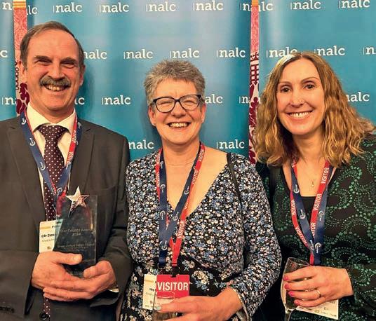 BELOW: Councillor Derek Harvey, Parish Manager Eirwen Tagg and Responsible Finance Officer Tess Phypers celebrate GLPC winning the Council of the Year Award.