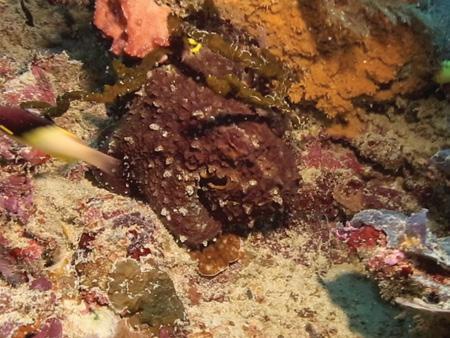 Camouflage helps the octopus blend into the rocks.