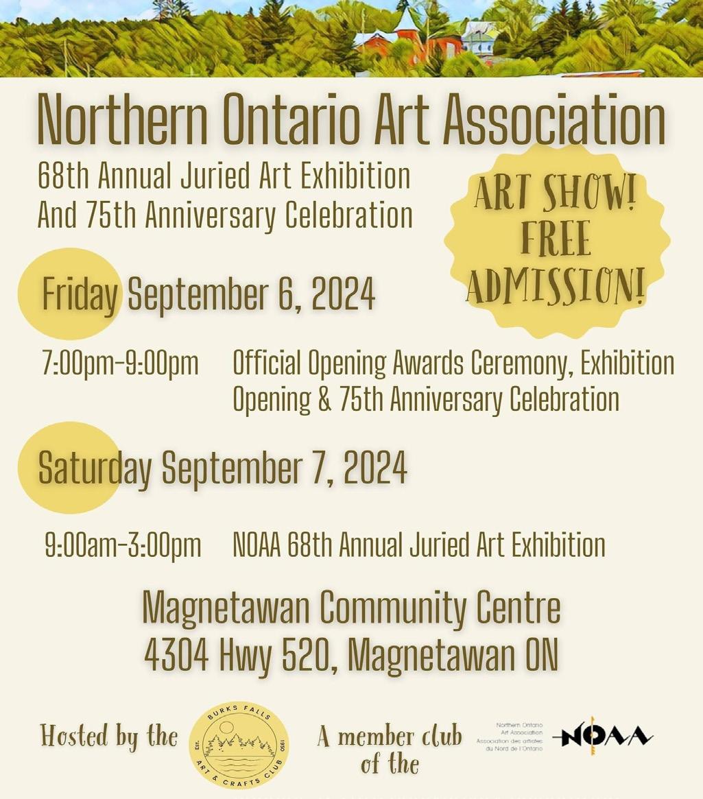 SUNDRIDGE SUNFLOWER FESTIVAL is looking for Buskers! We are looking for a talented and qualified people to perform at this years festival August10, 2024. Please email Vicki - vwhitmell@ me.com FROZEN MEAL DELIVERY! MEALS ARE $7.00 & CONSIST OF MAIN COURSE & DESSERT "DELIVERED EVERY TUESDAY - ELIGIBLE PERSONS INCLUDE: - SENIORS 65+ -THOSE WHO ARE TERMINALLY/CHRONICALLY ILL - THOSE WITH A DEVELOPMENT DISABILITY - THOSE RECENTLY DISCHARGED FROM HOSPITAL (I.E. POST SURGERY) - EAST PARRY SOUND Support Services - FOR MORE INFO & TO ORDER - CONTACT CSS @ 705724-6028
