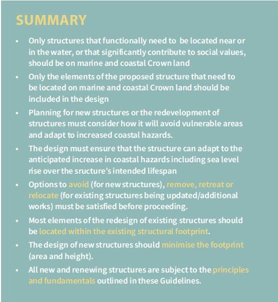 • Consideration of the footprint should use marine and coastal Crown land efficiently and sparingly.