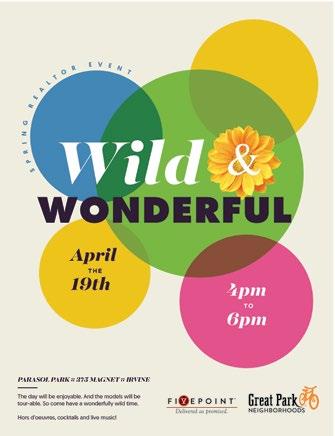 Tasting Spoon • Dogzilla California Grill Truck SEPT 12 AT PAVILION PARK TERRACE SEPT 12•6:00-9:00 STRAIGHT 78 by LEN 141511_FHN_SEPT_FLYER_M.pdf 8/22/14 5:29 PM LOCAL ART SWEETS BEER & WINE nov 22, 12-4pm Workshop AT THE 10:30 am- 11:30 am UPCOMING RSVP Aug Sept GreatParkNeighborhoods.com/Events SURviving the summer heat CLASS SIZE IS LIMITED, PLEASE REGISTER IN ADVANCE. Events will be hosted at Pavilion Park Terrace. 194 Compass, Irvine. Located at the intersection of Irvine Blvd. and Ridge Valley, just east of Sand Canyon Ave. JULY 19 UC Cooperative Extension Master Gardeners, OC PRESENTED BY: FRIDAY NIGHT HAPPENINGS Beacon Park | May 20 | 6-9pm Food Trucks | Beer & Wine Garden | Art Activities heirloom join us for charm & THIS MONTH AT PAVILION PARK TERRACE FOOD TRUCKS LIVE CHALK ART Tasting Spoon • Dogzilla California Grill Truck Drive Me Cookie SEPT 12 AT PAVILION PARK TERRACE SEPT 12•6:00-9:00 STRAIGHT 78 by AUG 8 T H Woodie and the and the AUGUST 8, 2014 6PM-9PM Friday night happenings This month at PAVILION PARK TERRACE UPCOMING COOKING DEMOS AUGUST 2 — Paella and Tapas Party | SEPTEMBER 6 — Indian Summer CLASS SIZE IS LIMITED. PLEASE REGISTER IN ADVANCE. Events will be hosted at Pavilion Park Terrace. 194 Compass, Irvine. Located at the intersection of Irvine Blvd. and Ridge Valley, just east of Sand Canyon Ave. GreatParkNeighborhoods.com/Events SATURDAY July 5 10:30–12:00PM ODE TO T H E BURGER C KING AT PAVILION PARK DeMO SWI NG! SEPTEMBER 27 TH 12-4PM GreatParkNeighborhoods.com/Events CELEBRATE YOUR SUNDAYS WITH US THROUGHOUT THE YEAR IN GREAT PARK NEIGHBORHOODS BEACON PARK Sunday FAMILY FAMILY Sunday MUSIC LIVE DENMA N TAU OHE D NC R Workshop PAVILION PARK TERRACE 10:30 11:30 UPCOMING RSVP Aug Sept GreatParkNeighborhoods.com/Events SURviving the summer heat 194 Compass, Irvine. Located at the intersection of Irvine Blvd. and Ridge Valley, just east of Sand Canyon Ave. JULY 19 UC Cooperative Extension Master Gardeners, OC PRESENTED BY: 501 Benchmark Beacon Park July 15 6-9pm Music by Whiskey Sunday Food Trucks Beer & Wine Garden Art Photo Ops GreatParkNeighborhoods.com/ 194 Compass, Irvine. Located at the intersection of Irvine Blvd. and Ridge Valley, just east of Sand Canyon Ave. NOVEMBER 5 AT PAVILION PARK 0: 3 0AM- 1 1: 3 0AM CALIFORNIA FRIENDLY LANDSCAPE Preparing Your Plants for the Rainy Winter Season 6pM - 9PM 375 MAGNET, IRVINE HAPPENINGS MAY 1 2 AT PARASOL PARK FRIDAY NIGHT HAPPENINGS Beacon Park | May 20 | 6-9pm Food Trucks | Beer & Wine Garden | Art Activities heirloom join us for charm & LOCAL ART SWEETS GreatParkNeighborhoods.com/Events MUSIC LIVE NAME H ERE SAMB D N EBAN OODFROMSOHOTACO & BARECLONAONTHEGO nov 22, 12-4pm 161077_FNH_JUNE_M1.indd 1 JULY 18 FRIDAY NIGHT HAPPENINGS AT PAVILION PARK TERRACE JULY 18-6:00-9:00 GD Bro Burger • Bear Flag Fish Co Drive Me Cookie Viking Truck Music by Beacon Park | April 15 | 6-9pm FESTIVAL EVENT Nº8 FRIDAY NIGHT HAPPENINGS Live Samba Band, Caro | Food Trucks Photo Booth Beer & Wine Garden Art Activities | Kids Entertainment LEN 160648 Friday Night Happening Flyer_L4_HR.pdf 4/7/16 2:59 PM UPCOMING YOGA CLASSES JUST EAST OF SAND CANYON AV 9.06 EFFORT AND SURRENDER 9.13 | GIVING AND RECEIVING 9.20 SELF NAVIGATION 9.27 | STRENGTH AND SOFTNESSAT PAVILION PARK SUNDAYS 11:30-1PM MAY 3 // JUNE 7 // JULY 5 // AUGUST 2 At the Great Park Certified Farmers Market SUMMER MUSIC SERIES SEPTEMBER 20 UPCOMING RSVP GreatParkNeighborhoods.com/Events CLASS SIZE IS LIMITED, PLEASE REGISTER IN ADVANCE. Events will be hosted at Pavilion Park Terrace. GARDEN WORKSHOP AT PAVILION PARK THE COOL SEASON GARDEN Sensational succulents UPCOMING RSVP Sept Oct 18 Nov GreatParkNeighborhoods.com/Events CLASS SIZE IS LIMITED, PLEASE REGISTER IN ADVANCE. Events will be hosted at Pavilion Park Terrace. 194 Compass, Irvine. Located at the intersection of Irvine Blvd. and Ridge Valley, just east of Sand Canyon Ave. PRESENTED BY: UC Cooperative Extension Master Gardeners, OC August 16 :: 10:30am 11:30am This month at PAVILION PARK TERRACE Workshop 10:30 am- 11:30 am UPCOMING RSVP Aug 16 Sept 20 Oct 18 Nov 15 GreatParkNeighborhoods.com/Events SURviving the summer heat CLASS SIZE IS LIMITED, PLEASE REGISTER IN ADVANCE. Events will be hosted at Pavilion Park Terrace. JULY 19 UC Cooperative PRESENTED BY: 10:30am 12:00pm / Pavilion Park CLASS SIZE IS LIMITED. PLEASE REGISTER IN ADVANCE. Events will be hosted at Pavilion Park Terrace. 194 Compass, Irvine. Located at the intersection of Irvine Blvd. and Ridge Valley, just east of Sand Canyon Ave. GREATPARKNEIGHBORHOODS.COM/EVENTS SEPTEMBER 6, 2014 JULY 18 FRIDAY NIGHT HAPPENINGS AT PAVILION PARK TERRACE JULY 18-6:00-9:00 FOOD TRUCKS GD Bro Burger Bear Flag Fish Co Drive Me Cookie Viking Truck UPCOMING Aug 8 & Sept 12 Music by UPCOMING YOGA CLASSES 9.06 | EFFORT AND SURRENDER 9.13 GIVING AND RECEIVING 9.20 | SELF NAVIGATION 9.27 STRENGTH AND SOFTNESSAT PAVILION PARK AUG 8 T H AUGUST 8, 2014 - 6PM-9PM Friday night happenings FOOD TRUCKS UPCOMING SEPT 12 PAELLA AND TAPAS PARTY AUGUST 2, 2014 10:30am - 12:00pm UPCOMING COOKING DEMO September 6 CLASS SIZE IS LIMITED. PLEASE REGISTER IN ADVANCE. Events will be hosted at Pavilion Park Terrace. 194 Compass, Irvine. 10:30am 12:00pm Pavilion Park 194 Compass, Irvine. Located at the intersection of Irvine Blvd. and Ridge Valley, just east of Sand Canyon Ave. SEPTEMBER 6, 2014 FRIDAY NIGHT HAPPENINGS FOOD TRUCKS GD Bro Burger • Bear Flag Fish Co Drive Me Cookie • Viking Truck UPCOMING Aug 8 & Sept 12 AUG 8 T H AUGUST 8, 2014 - 6PM-9PM Friday night happenings This month at PAVILION PARK TERRACE FOOD TRUCKS SoHo Taco Tailgate Truck • Froyo Truck Cali-Fusion UPCOMING SEPT 12 DECEMBER 29-31 // At Pavilion Park 10:30am-12:00pm Part of the camp will focus on self-portraits, which may be featured in the marketing e orts for Great Park Neighborhoods. Art Camp is free but space is limited to 30 students. Register at GreatParkNeighborhoods.com/artcamp