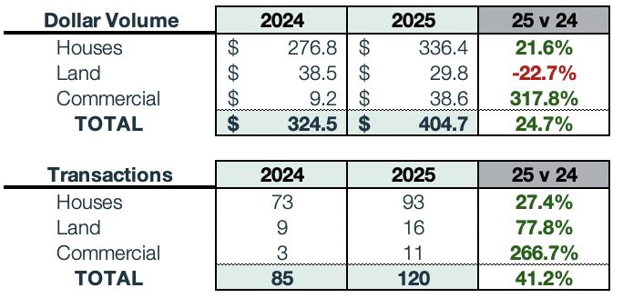 May was a smaller month than anticipated for the Nantucket real estate market. May total dollar volume was $54.1 million - a 23.6% decrease from May 2024. Transactions were slightly down as well, dropping from 22 last May to 20 this month, marking a 9.1% decrease. While May was slightly lower than historical standards, 2025 is still off to a good start as we enter the market’s most active season. Year-to-date for 2025, total dollar volume has hit $404.7 million, up 24.7% from the $324.5 million recorded by this time last year. Transactions are also green for 2025, up 41.2% from the prior year. Excluding the COVID years, of 2021 and 2022, 2025 has seen the highest dollar volume the island’s real estate market has seen through this point of the year on record.