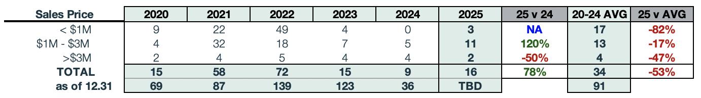 As mentioned in April, a trend that we are paying attention to is the under $2M market. In recent years, this segment has had low inventory and few transactions. Under $2M buyers are generally more interest rate sensitive and have seemingly been on the sidelines in hopes of lowering interest rates. However, despite interest rates remaining in the 6.5% - 6.9% range, we saw another 9 of these properties sell in May. Through May of 2024, there were only 18 sales under $2M; thus far in 2025, there have been 35.
