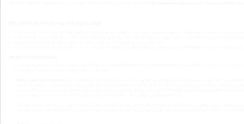 • Examineeswho appear unwellor exhibitsymptoms of COVID-19 on examday will not be permittedto writethe exam and must leavethe premises immediately.