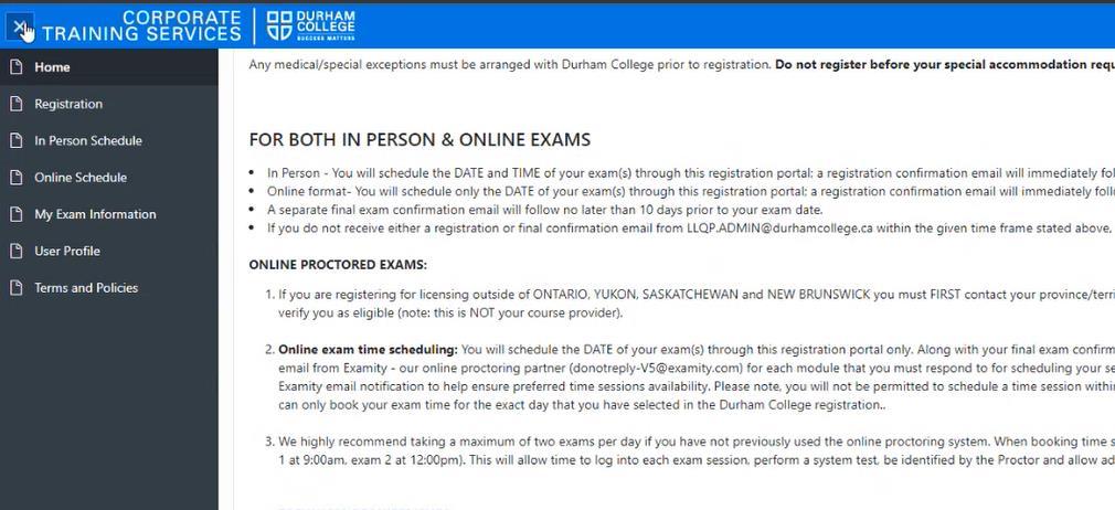3. Durham Collegewill contactyou directlyto register for theexam modules.