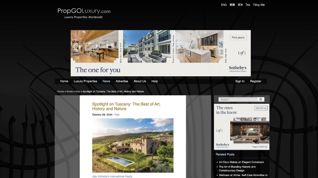 Hand selected by Sotheby?s International Realty®editorial team, PropGo features 1x unique editorial each month on their Blog and News page.It?s then amplified on PropGo?s social platforms for added exposure.