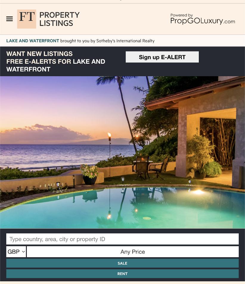 The Sotheby?s International Realty® brand is the exclusive lifestyle search partner on propertylistings ft com and in FT print advertisements. VIEW FT PROPERTY