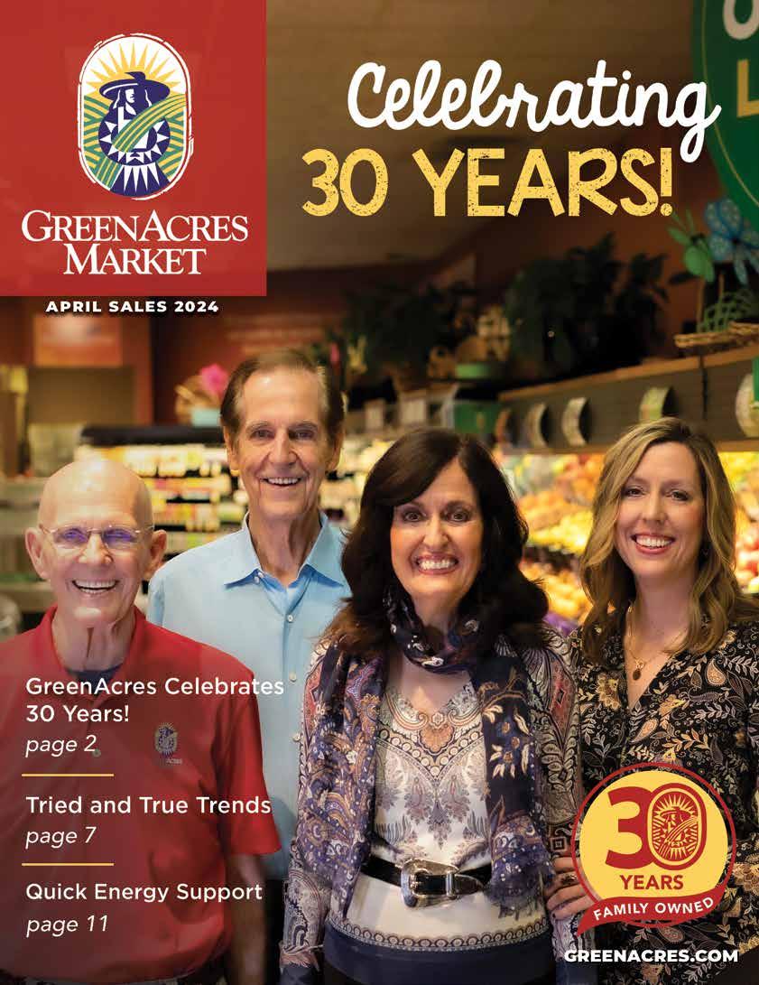 SUPPLEMENTS BODY HEALTH SELECT PRODUCTS 20% OFF MSRP GAIA HERBS SELECT PRODUCTS 25% OFF MSRP FOUR SIGMATIC SELECT PRODUCTS 20% OFF MSRP CARLSON LABS SELECT PRODUCTS 25% OFF MSRP CHARLOTTE'S WEB SELECT CBD PRODUCTS 25% OFF MSRP Happy 30th to GreenAcres! Happy 30th to GreenAcres! FAM I LY O W NED YEARS 25% OFF MSRP Liposomal Vitamin C 1000 MG 60 Capsules NAC with Milk Thistle 500 mg 60 Capsules Biothin USDA 120 Capsules Organic Fermented Beets 60 Capsules Glen Depke, traditional naturopath, and D r . Me r col a ’ s Nati o n a l E d u cato r wil l discuss healthy lifestyle practices and a supplement regimen to restore metabolic health and brain power! FREE SEMINAR FREE SEMINAR SCAN THE QR OR SIGN UP ONLINE AT: GREENACRES.COM/HEALTHY-BLOOD-SUGAR-SEMINAR/ S A T. A PRIL 1 3 T H 1 0 : 0 0 A M T HU R . A PRIL 1 1T H 6 : 0 0 P M G R E ENA C R E S M A R K E T B R A D L E Y F A I R G R E EN A C R E S M A R K E T W A LNUT S QUA R E OK C 8