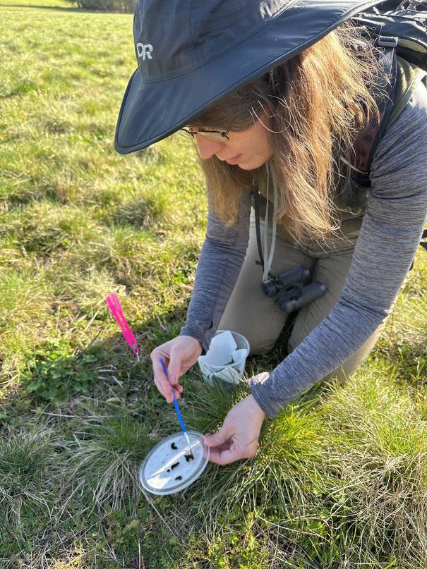 1) Taylor’s checkerspot caterpillars released under protective covers until flight at Bald Hill Farm 2) We said “see you later” to Stewardship Director Matt Blakeley-Smith after 11+ impactful years. 3) The teensiest Roughskinned newt enjoying protected habitat.