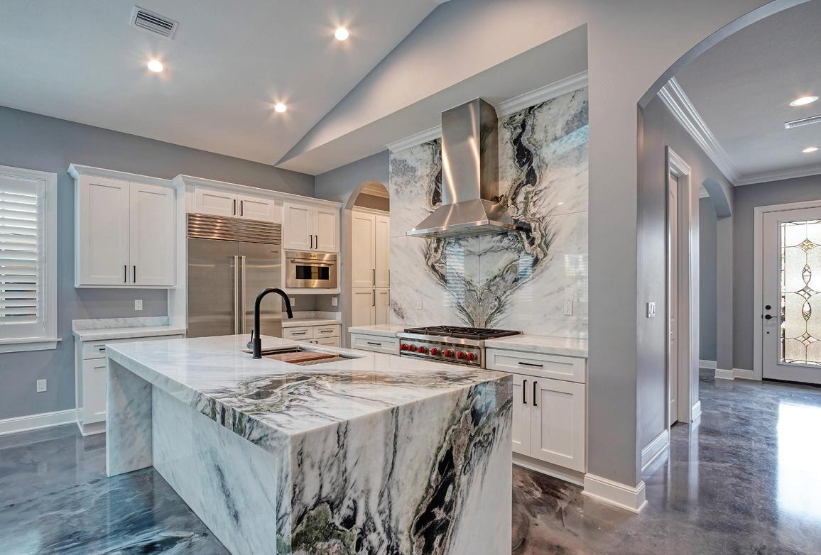 “We offer an all-inclusive, turnkey design which starts with a property survey, then to developing architectural plans and the application for the permit. We use real, solid stone, stucco finish over block, and the client’s choice of Sherwin Williams paint, both inside and out.” The process is completed in four months after the permit is received.