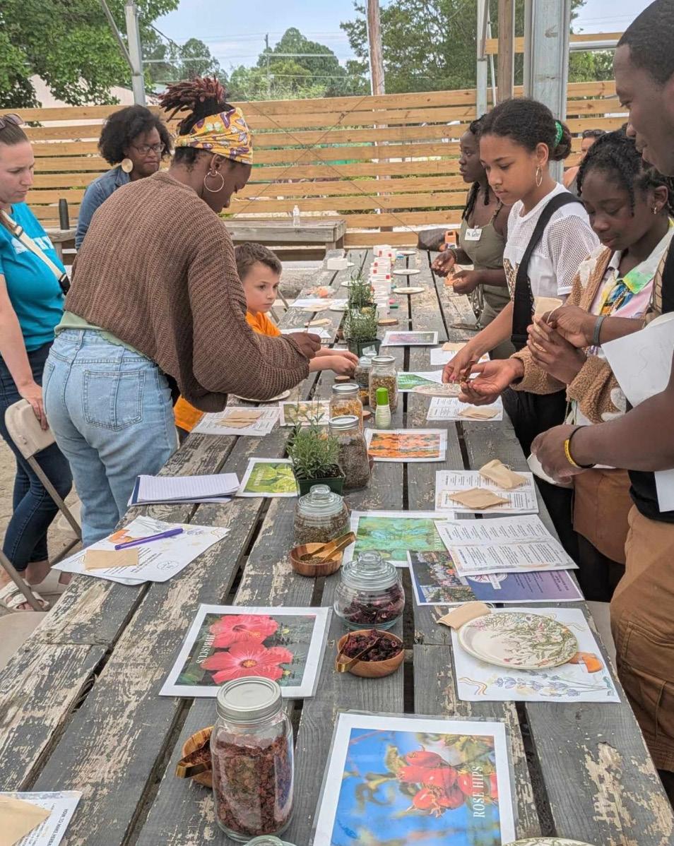 Encourage them to think about everything they see— colors, scents, sounds, movement.