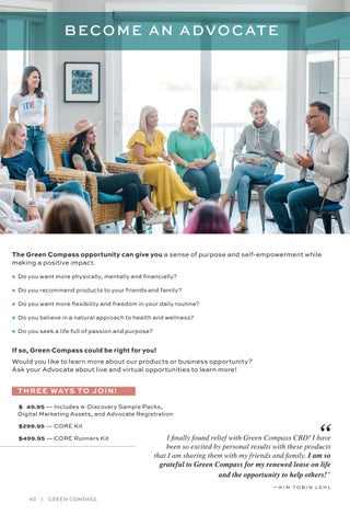 The Green Compass opportunity can give you a sense of purpose and self‑empowerment while making a positive impact. n