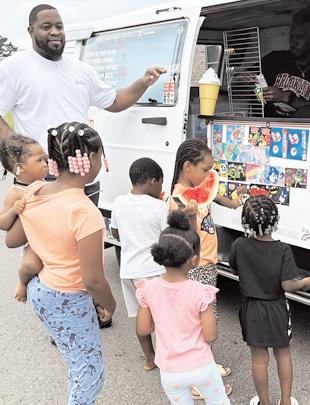 Constable Deangelo Hall provided ice cream treats for youth and others at recent community events in Greene County Hall’s ice cream van was at Branch Heights Center during Community Fun Day held Saturday, June 21, and at the GreeneSumter Farmers Market on the old courthouse square in Eutaw, Saturday, June 28, 2025 ‘Serving my community is my duty, but to pass out free ice cream to the youth in the city of Eutaw has been my pleasure First and foremost, I want to thank God for making this all happen; it wouldn't have been possible without