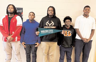 Greene County High School Scholars from left to right- Webster Underwood (Computer Science), Kelvies Snoddy (Electrical Technology), Jordan Henley (HVAC), Morris Hardy (Welding), and Earnest Carpenter (Welding) have been accepted to Shelton State Community College where they plan to further their education and sharpen their technical skills