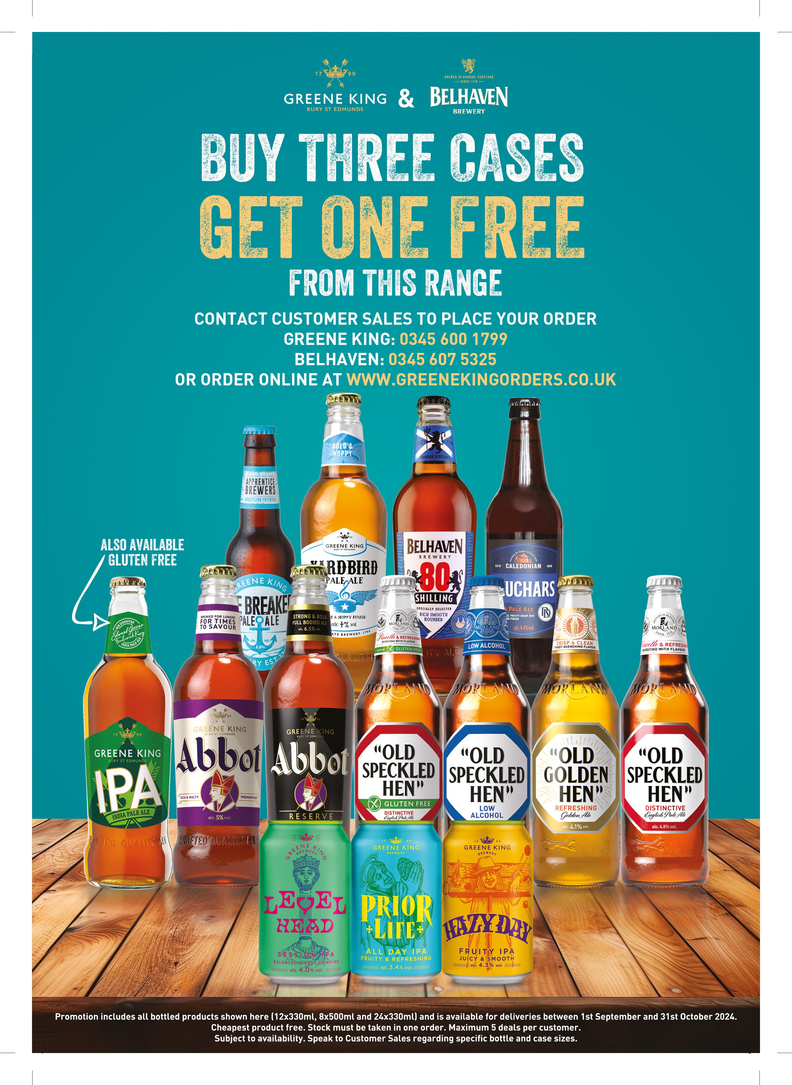 Buy 3 cases of Greene King bottles or cans and get 1 case Free.