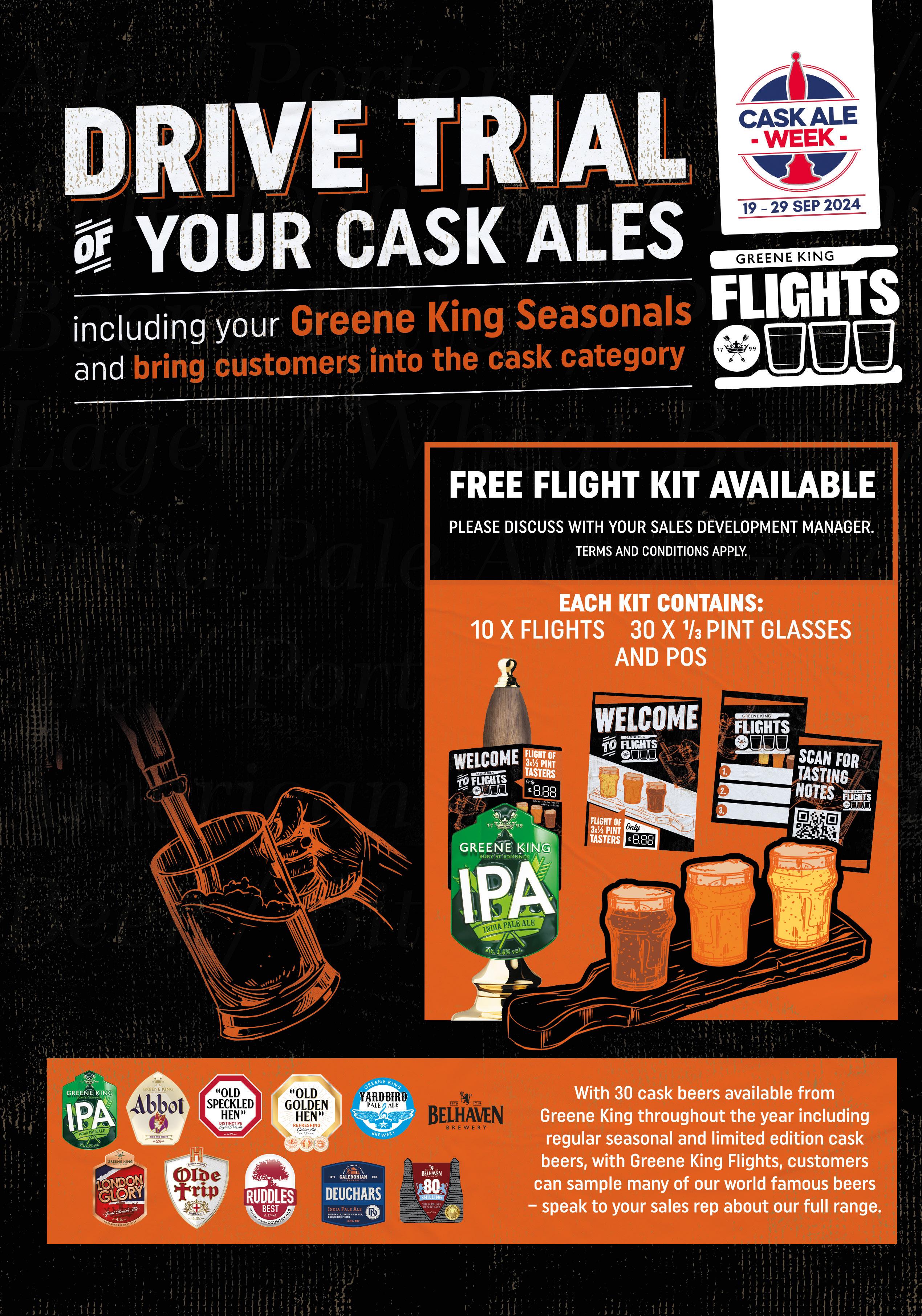 Pre-order 6 firkins (or 12 pins) over a 12-week period to receive a Cask Ale Flight Kit. 1 per customer