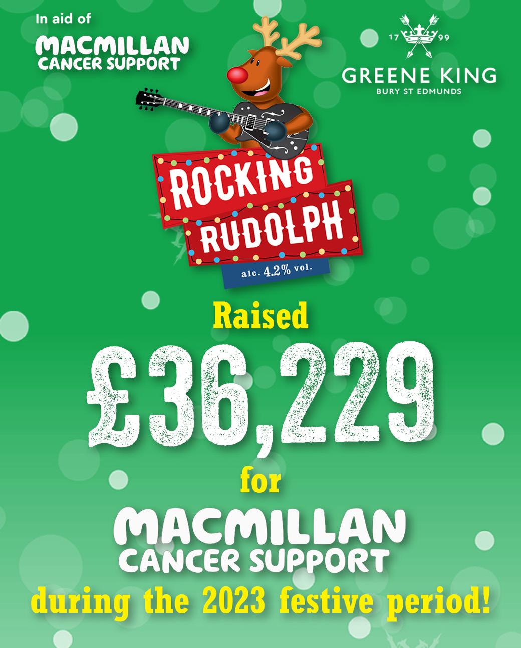 Greene King has confirmed that it has raised over £3.8m for Macmillan Cancer Care in 2023. Of that figure, Greene King Brewery contributed more than £89k of which you, our wonderful Free Trade customers, raised over £20k with your support for Rocking Rudolph and your generous donations.