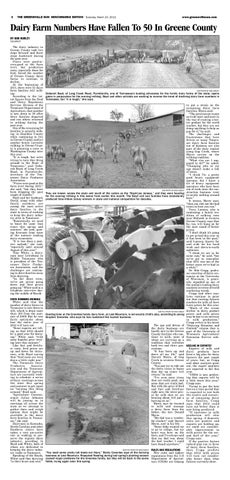 Dairy Farm Numbers Have Fallen To 50 In Greene County BY BOB HURLEY COLUMNIST