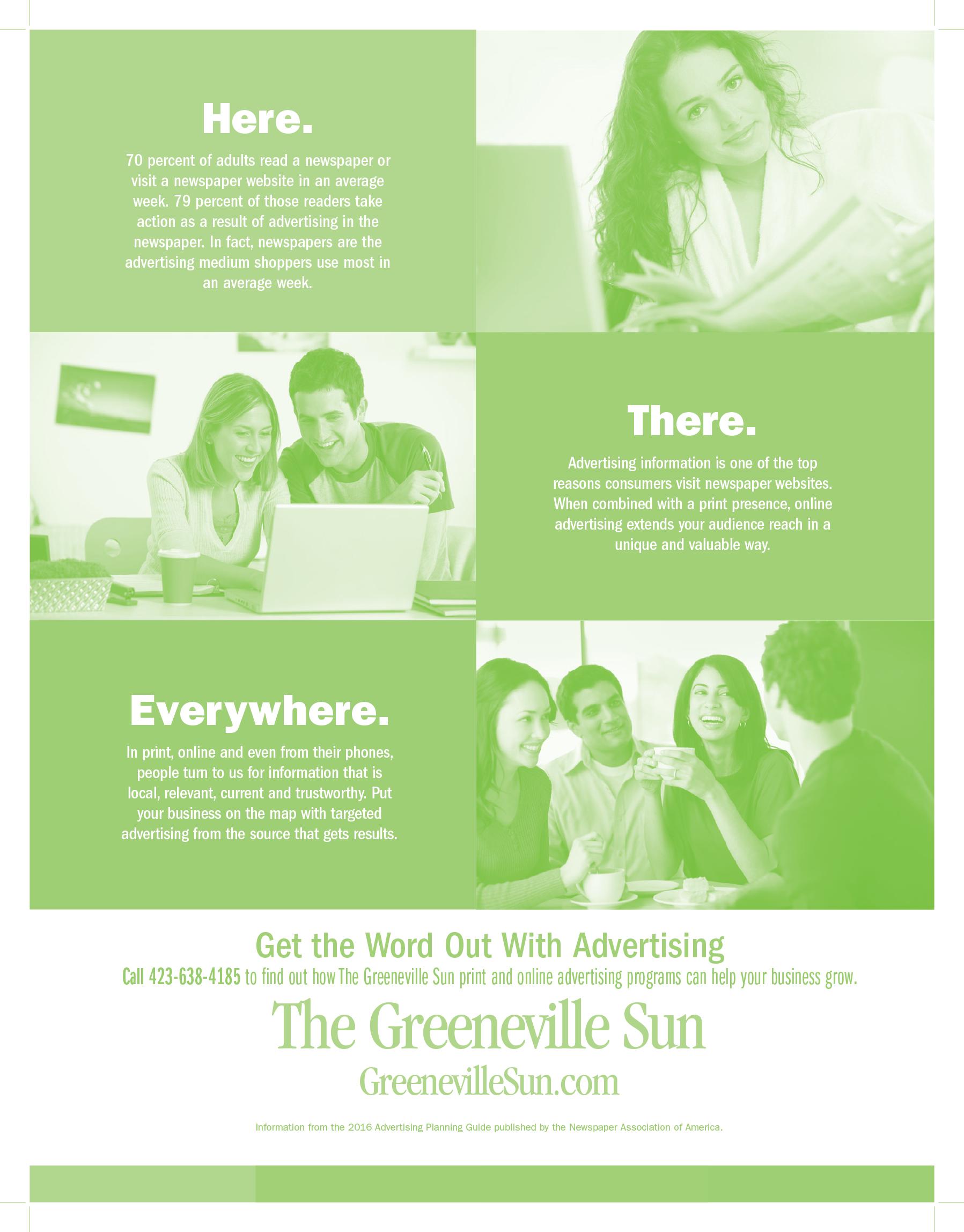 The Greeneville Sun is Greeneville and Greene County’s daily newspaper. It is a combination of what had been three weekly newspapers; Searchlight, and The Greeneville Democrat. The earliest of the three was The Greeneville Democrat, which dates to 1879. Until September 1, 2016, when the Sun and its sister newspapers were sold to another family-owned newspaper company, Adams Publishing Group, the newspaper was in its fourth generation and its one hundredth year of ownership by the Susong-O’KeefeJones family.