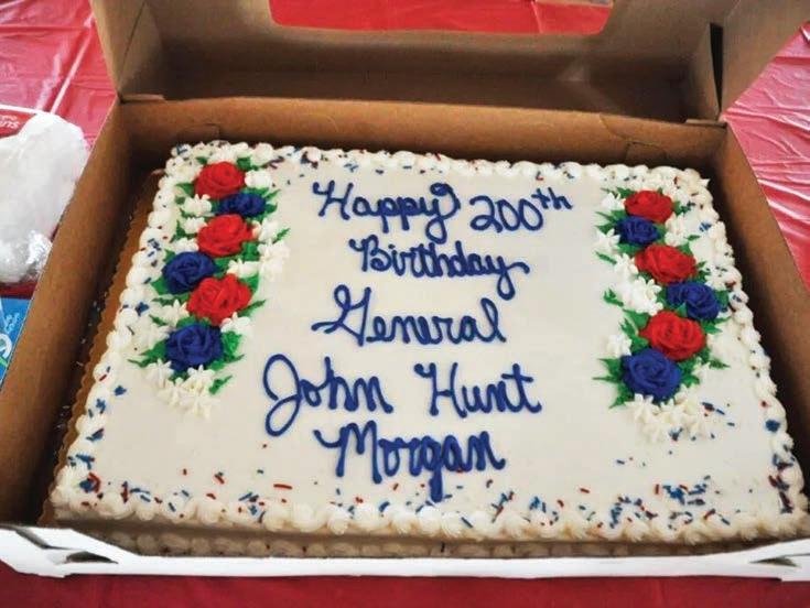 Over 80 visitors from the community enjoyed cake and punch as they joined in singing “For He’s A Jolly Good Fellow” to longtime Morgan reenactor Stan Dalton who enthusiastically cut the cake. Happy Birthday was not sung because it had not been