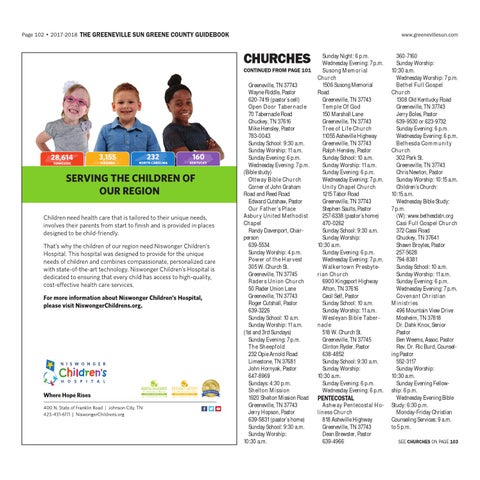 Page 102 • 2017-2018 THE GREENEVILLE SUN GREENE COUNTY GUIDEBOOK