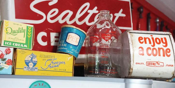 There are ice cream-related antiques displayed at the store. Andy said mom and dad are both antique collectors.
